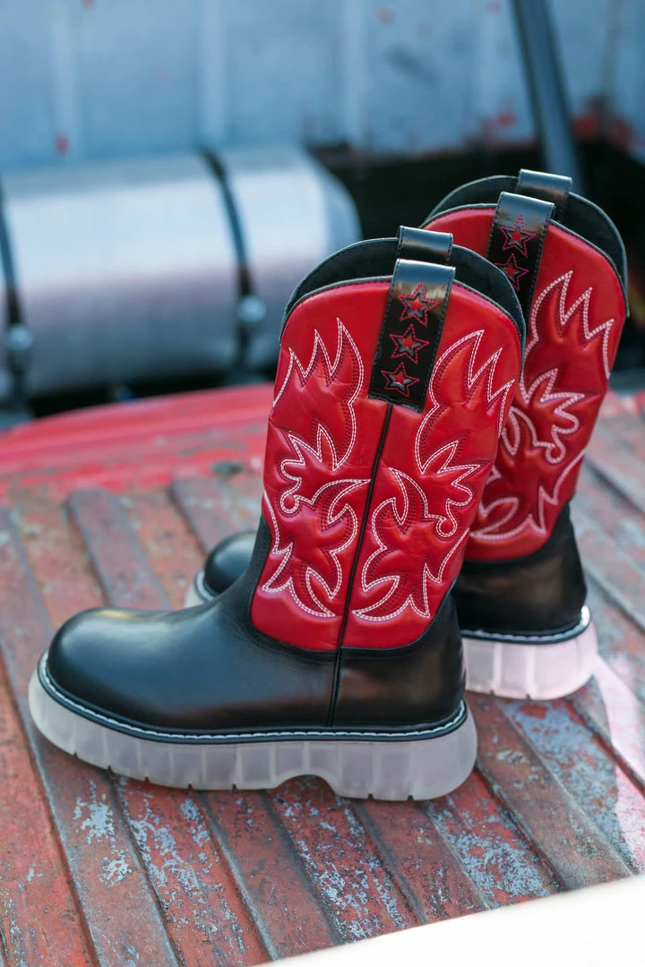 Western mid-calf sneaker boot with clear bottom
