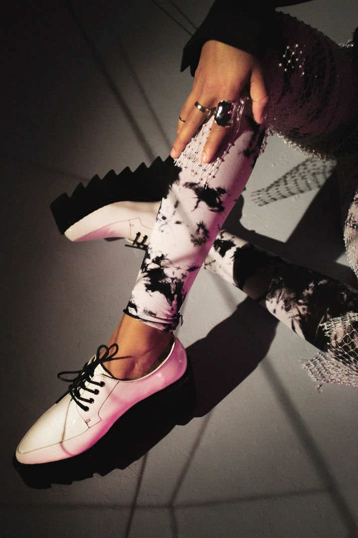 - White Crinkle Patent: Leather Upper, Leather Lining, Synthetic Sole