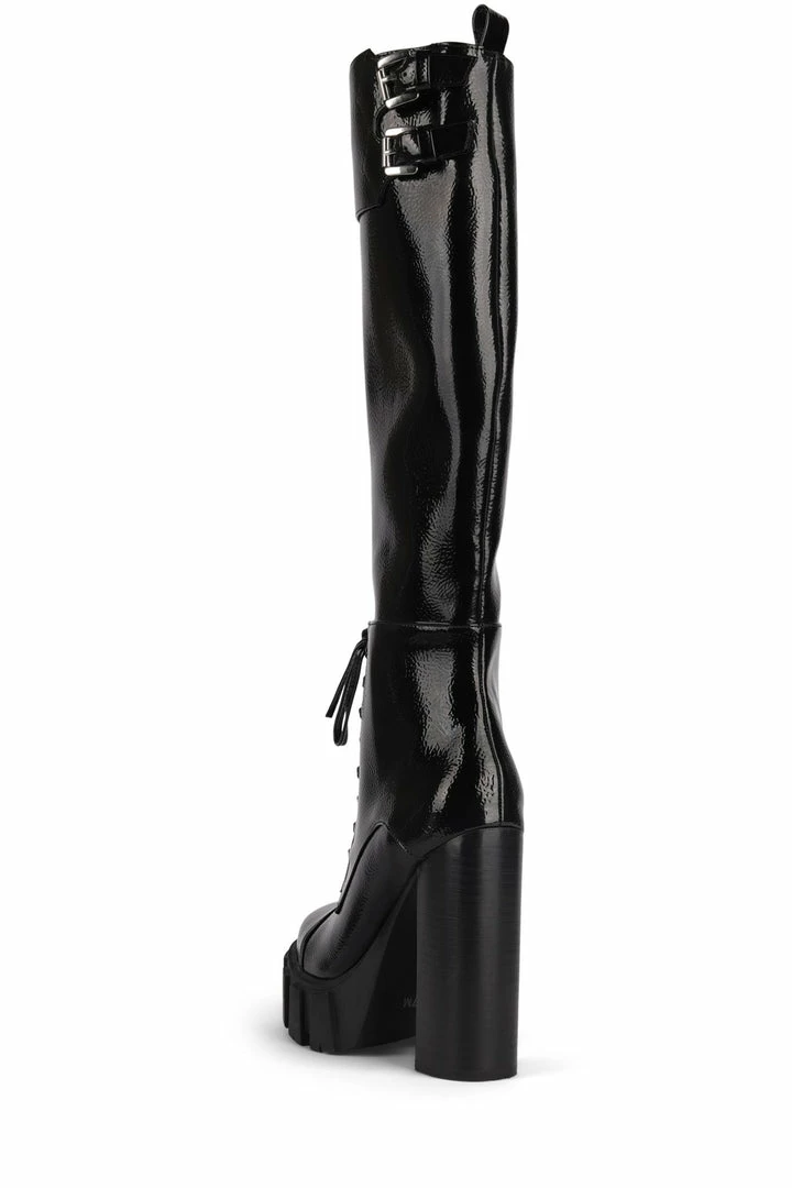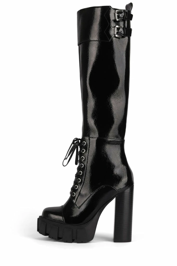 Knee-high platform lace up boot.
