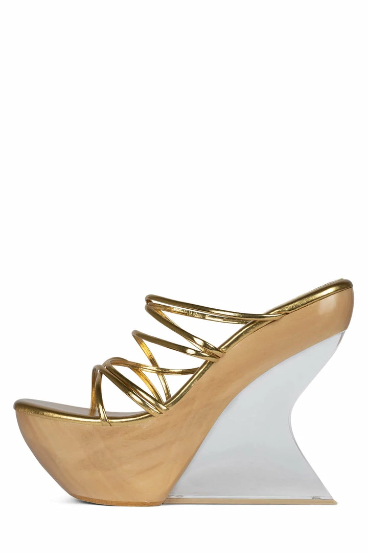 Strappy platform wooden sandal with lucite wedge