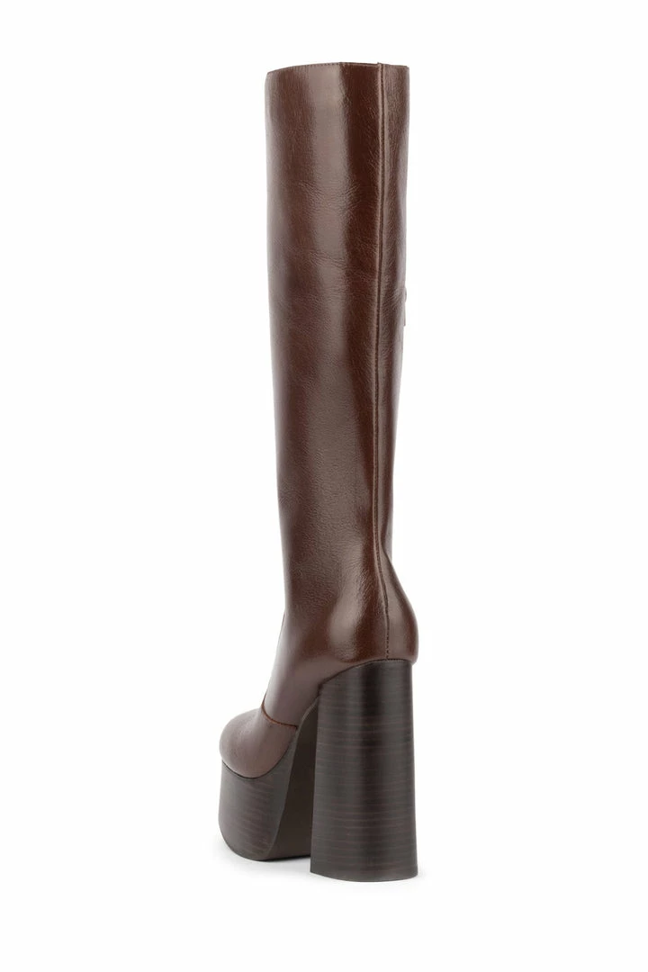 Knee-high platform chunky heeled boot.