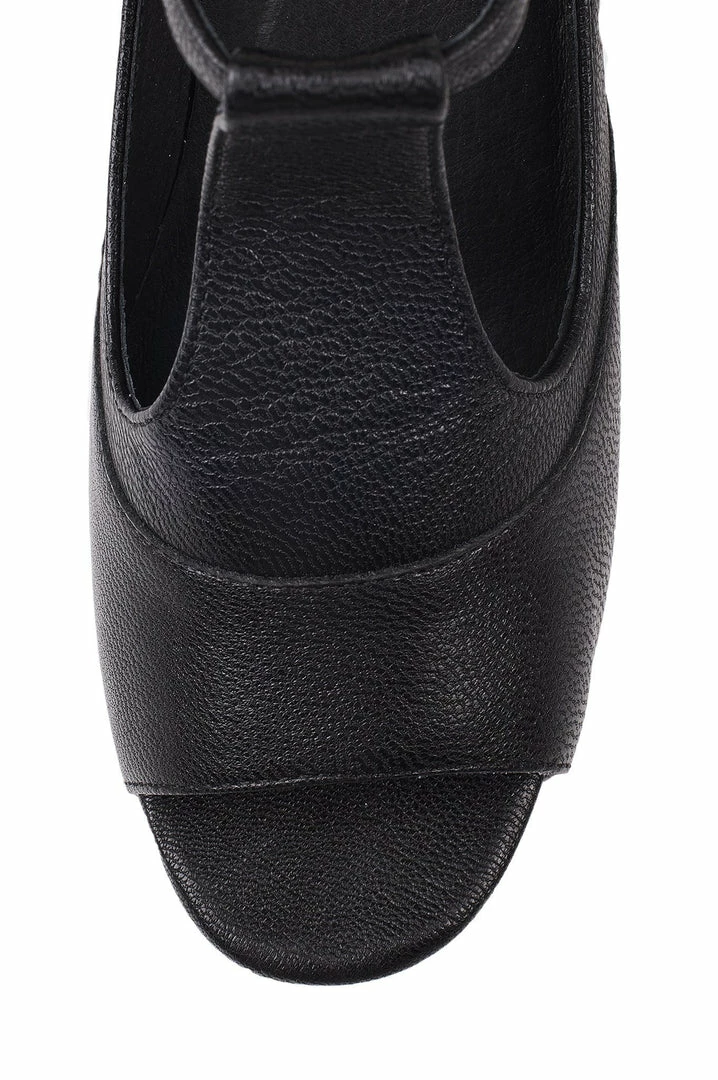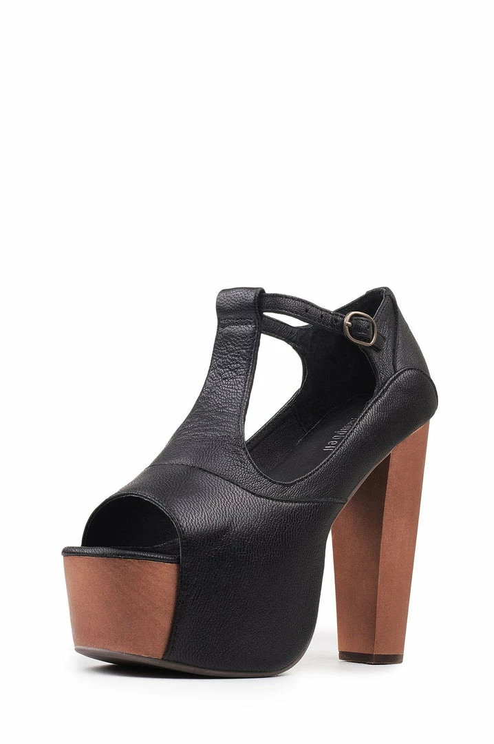 T-strap platform heeled sandal.