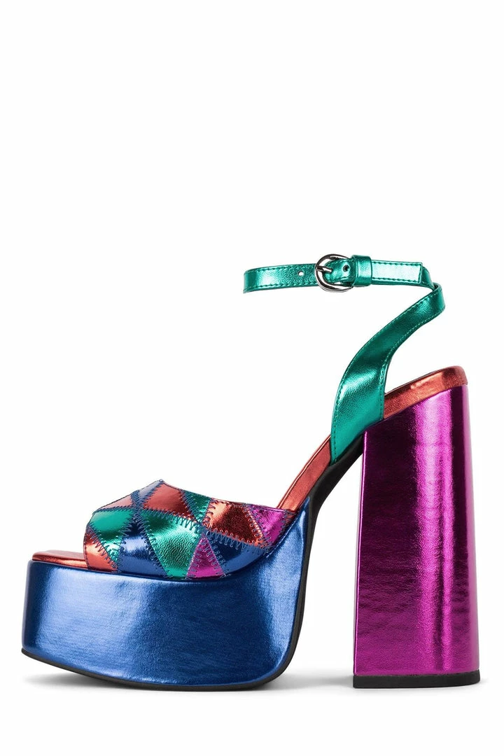 Platform sandal with patchwork.