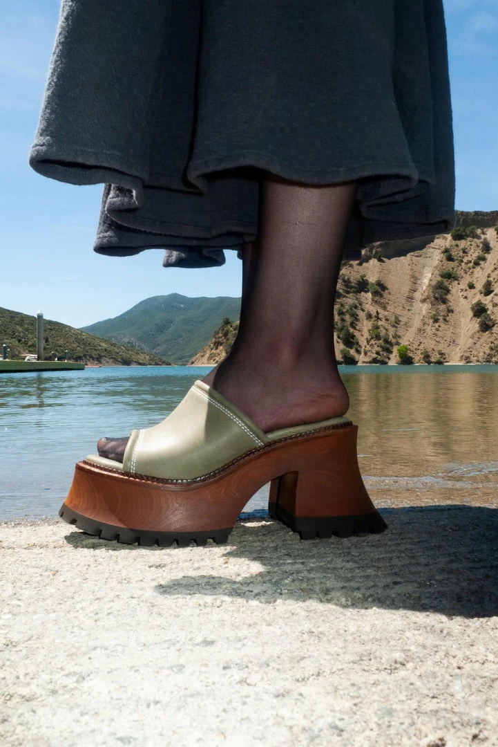 Platform sandal with exaggerated flared welt