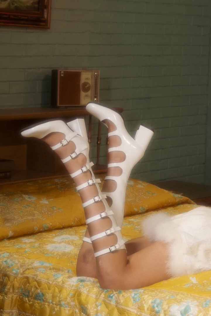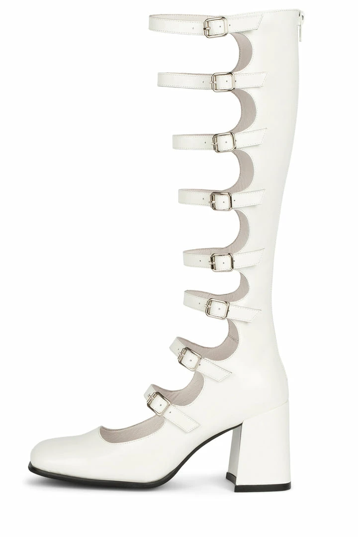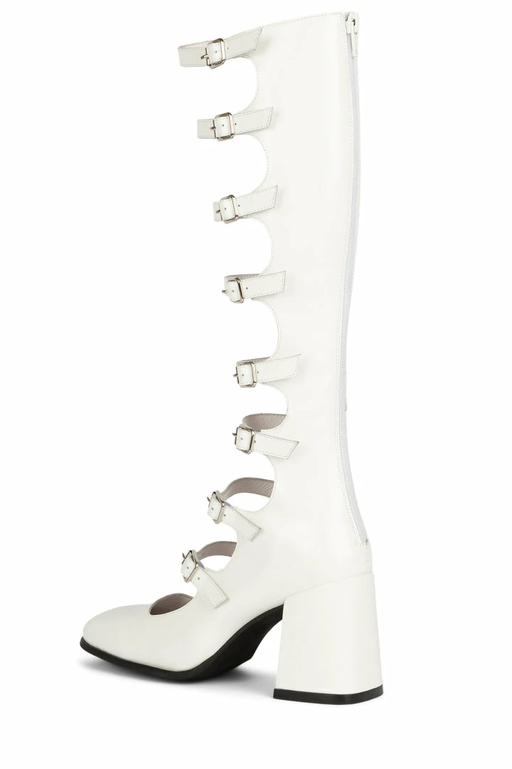 Cut-out knee-high pump with buckle detail