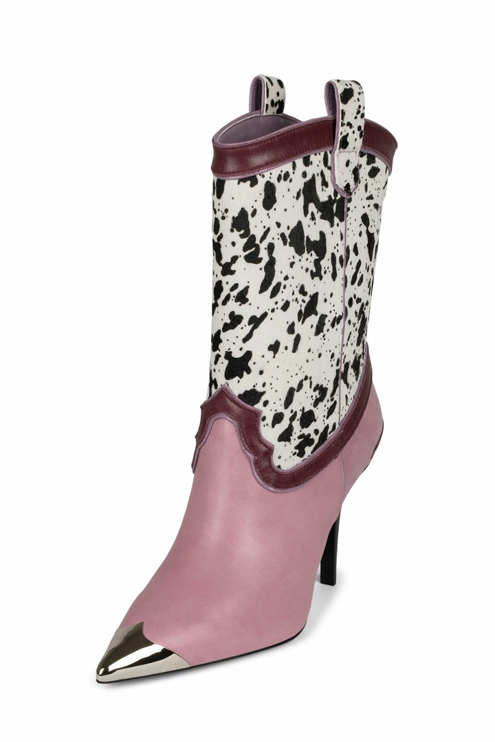 Mixed-material calf-hair stilleto western style stiletto boots