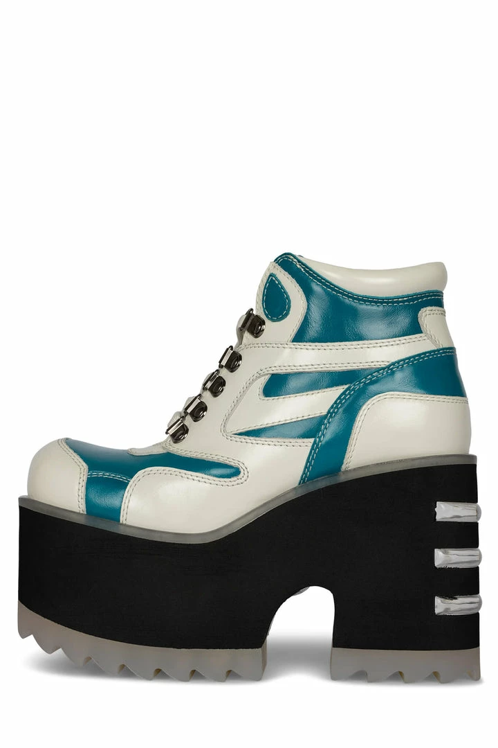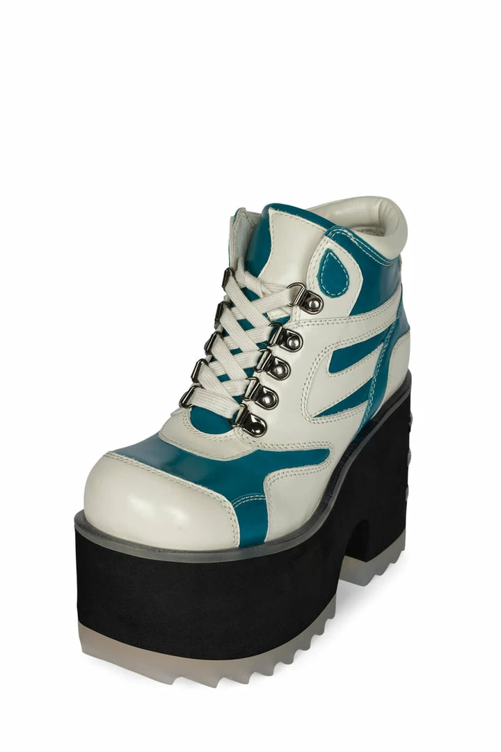 90s rave inspired lace-up platform ankle boot with clear tooth treaded sole