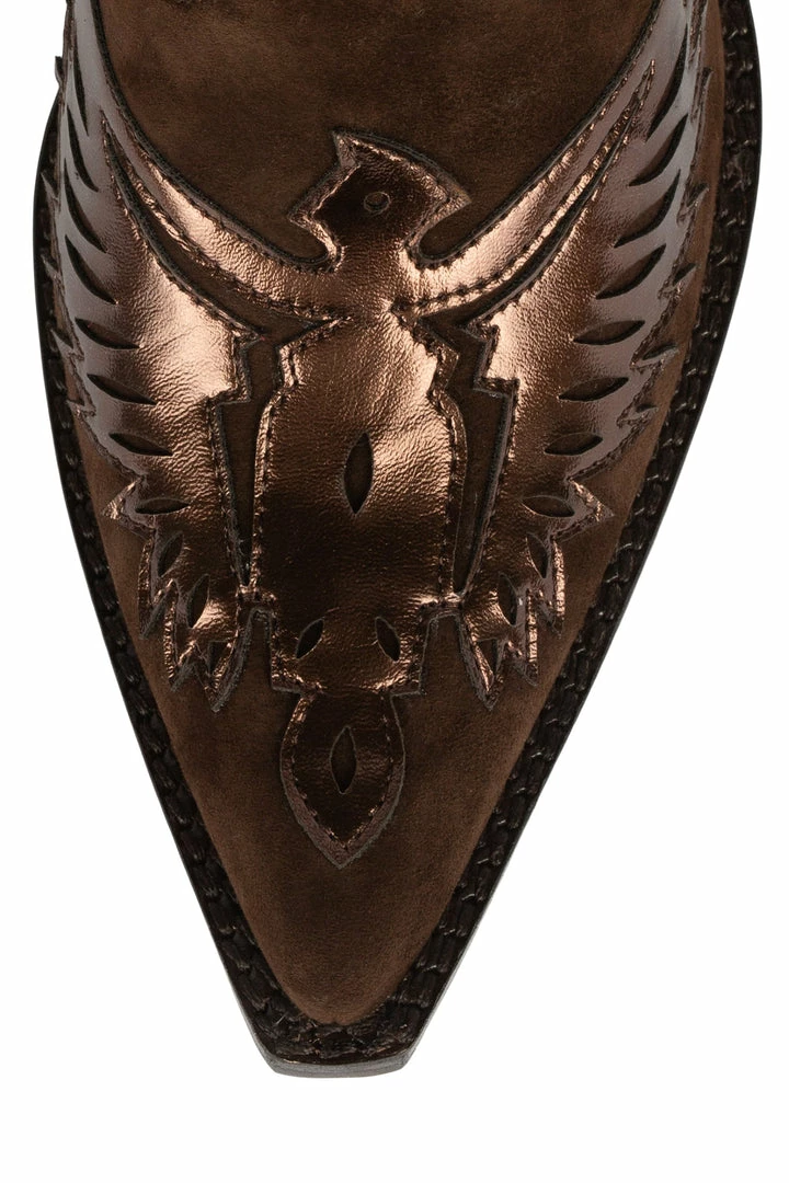 Mixed-material mid-calf western boot