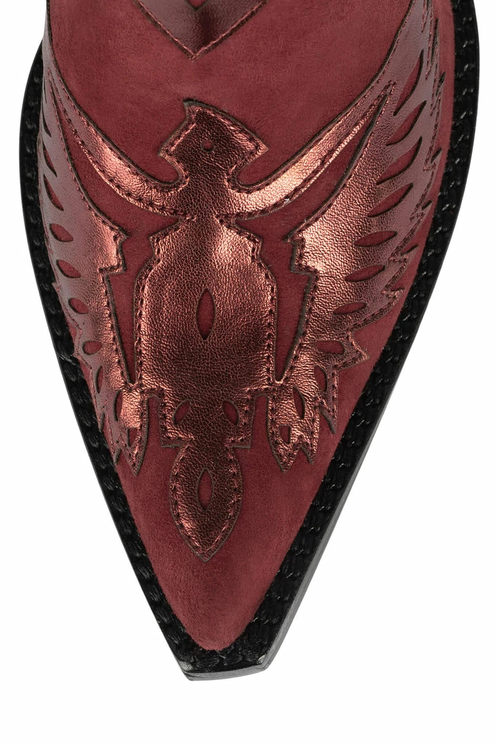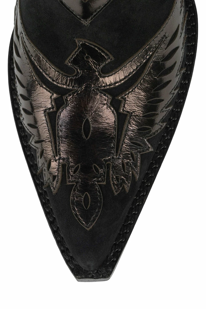 Mixed-material western heeled mule
