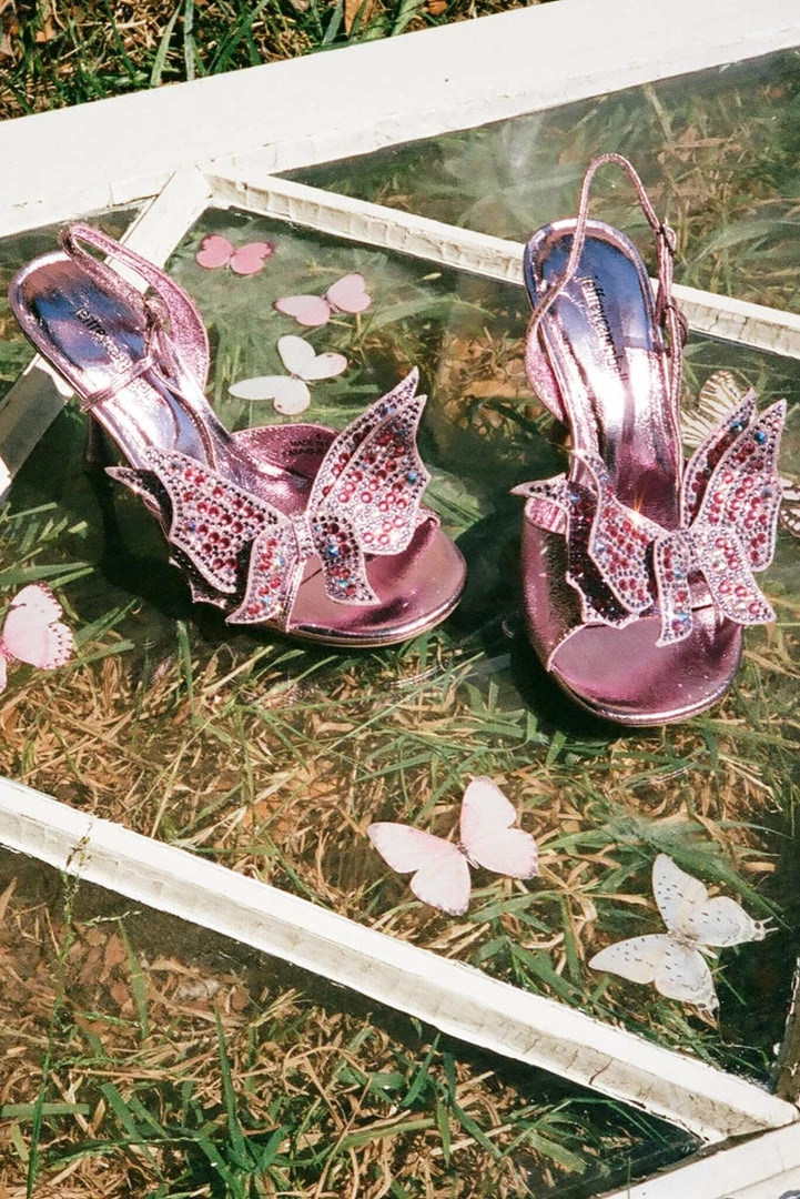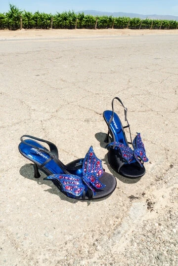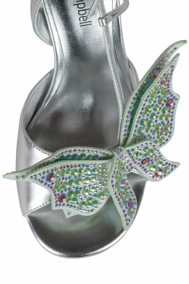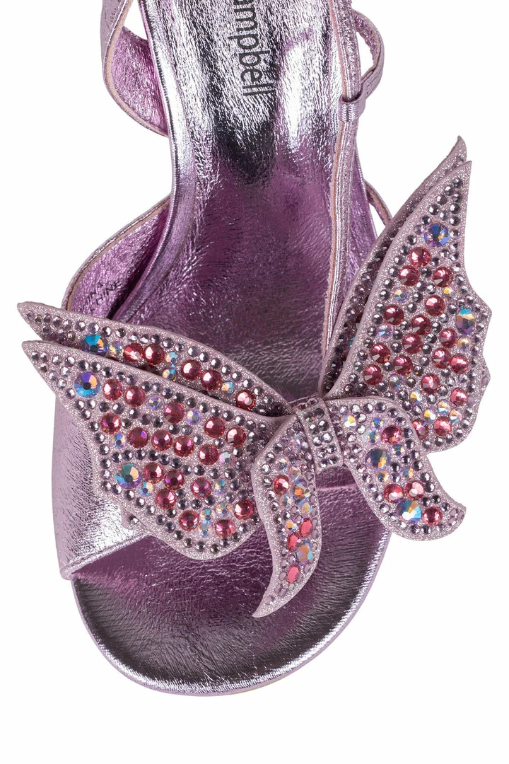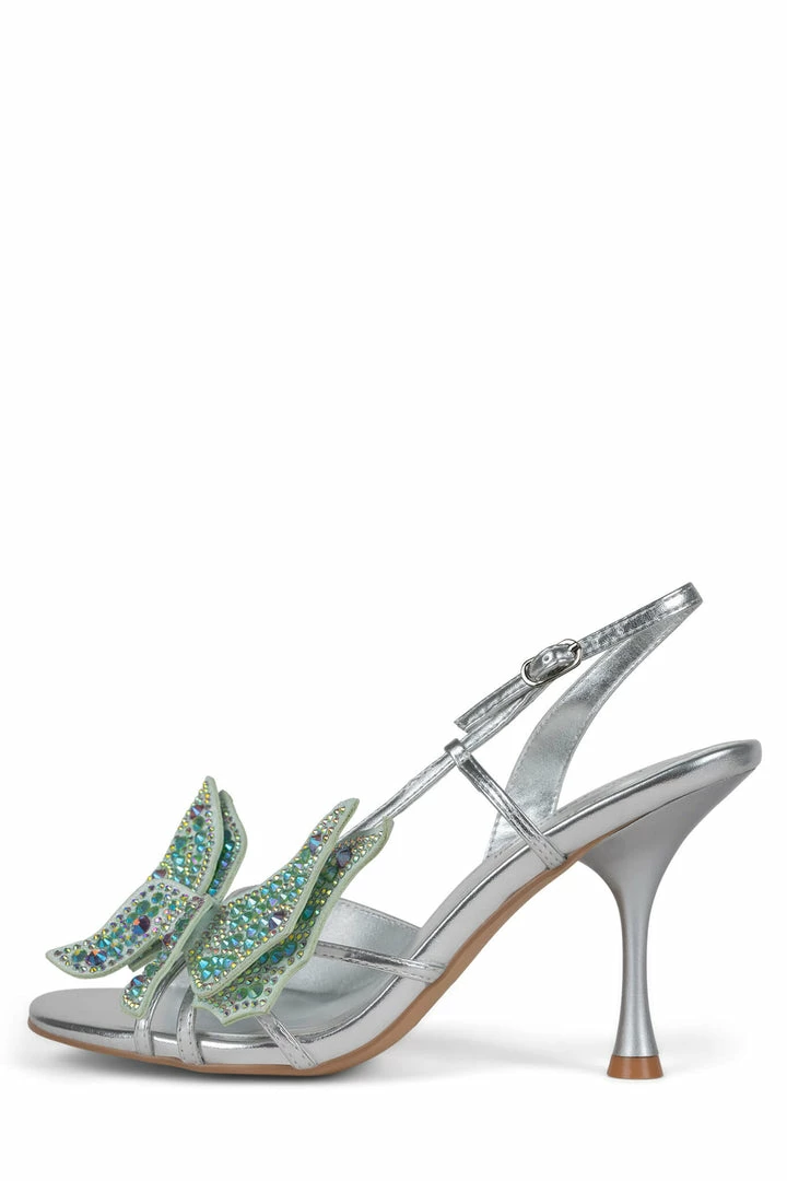 Round-toe slingback heeled sandal with butterfly appliquéÂ