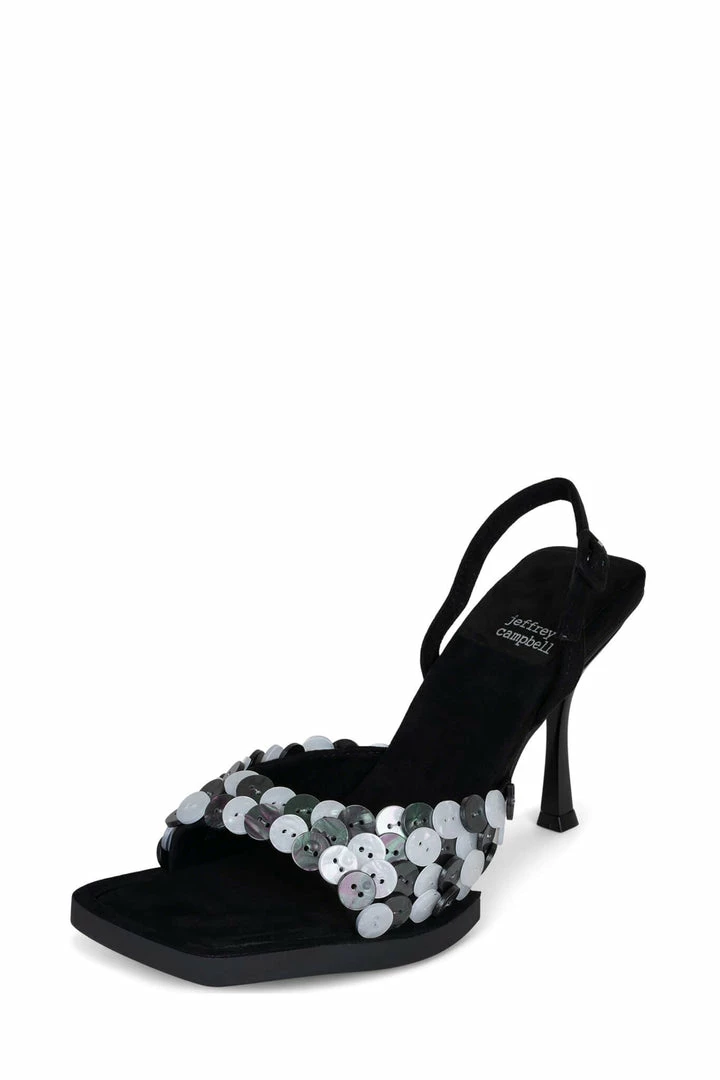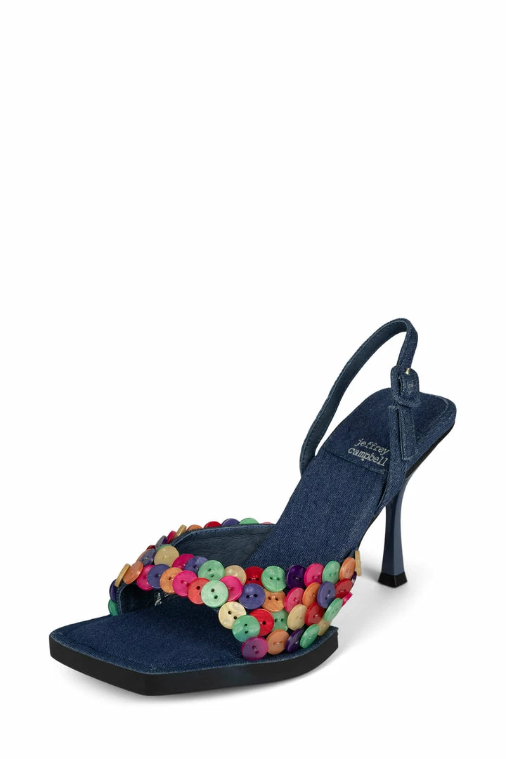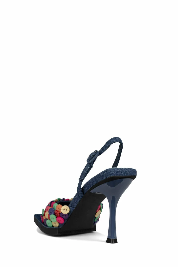 Slingback heeled sandal with button detail