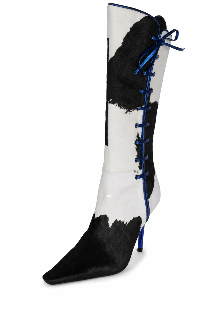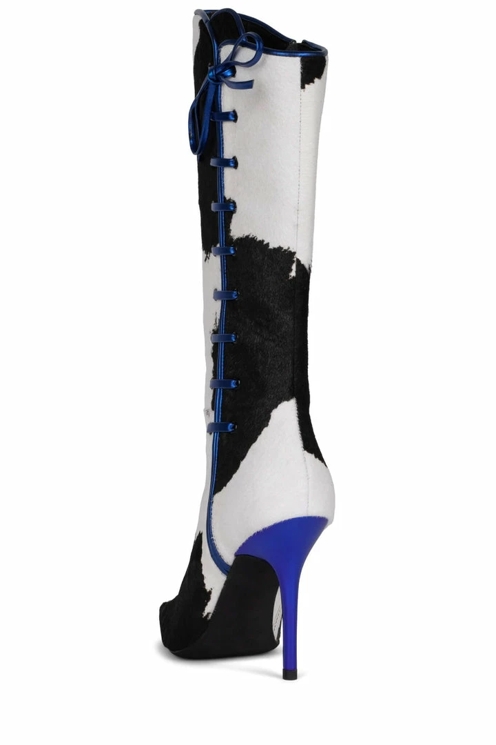 Calf-hair knee-high pointed-toe stiletto boot with lace-up detail