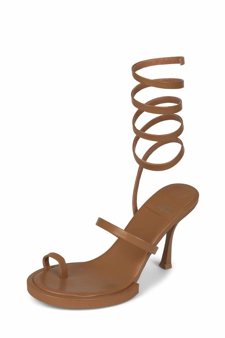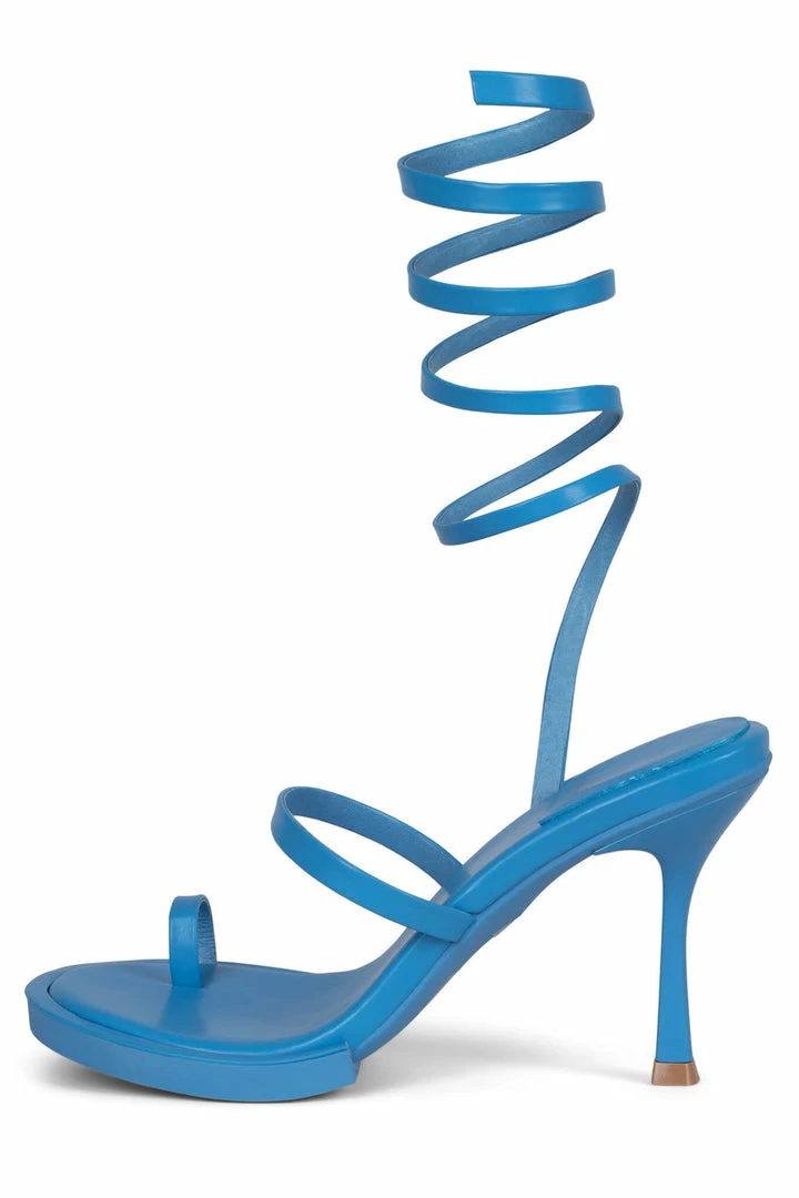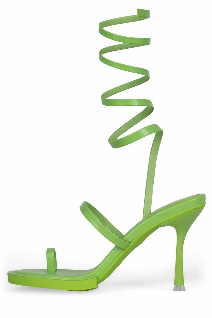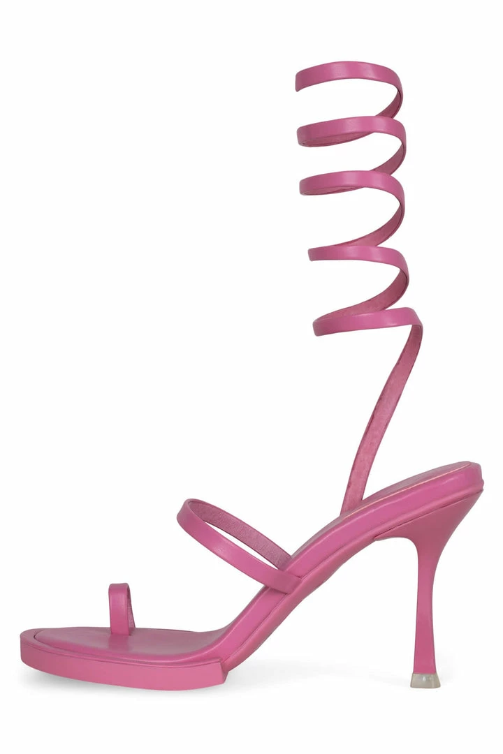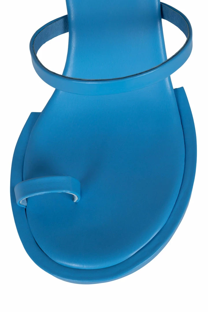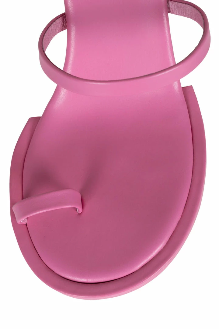 Round-toe sandal with toe loop and wrap-around strap.