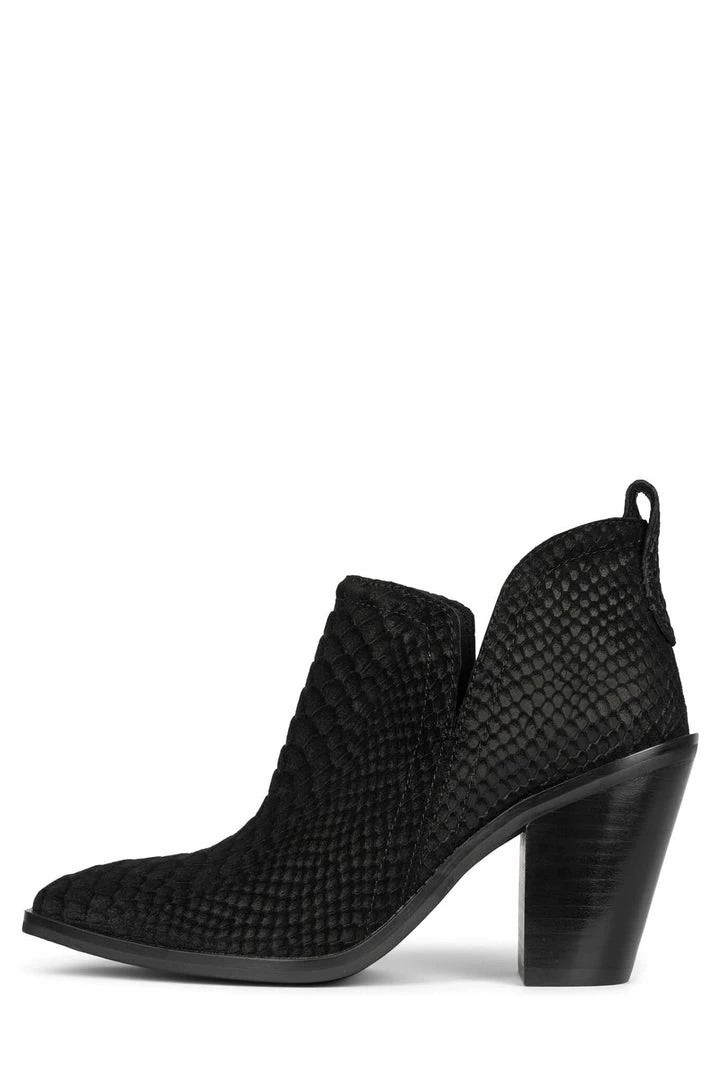 Stacked heeled ankle bootie.