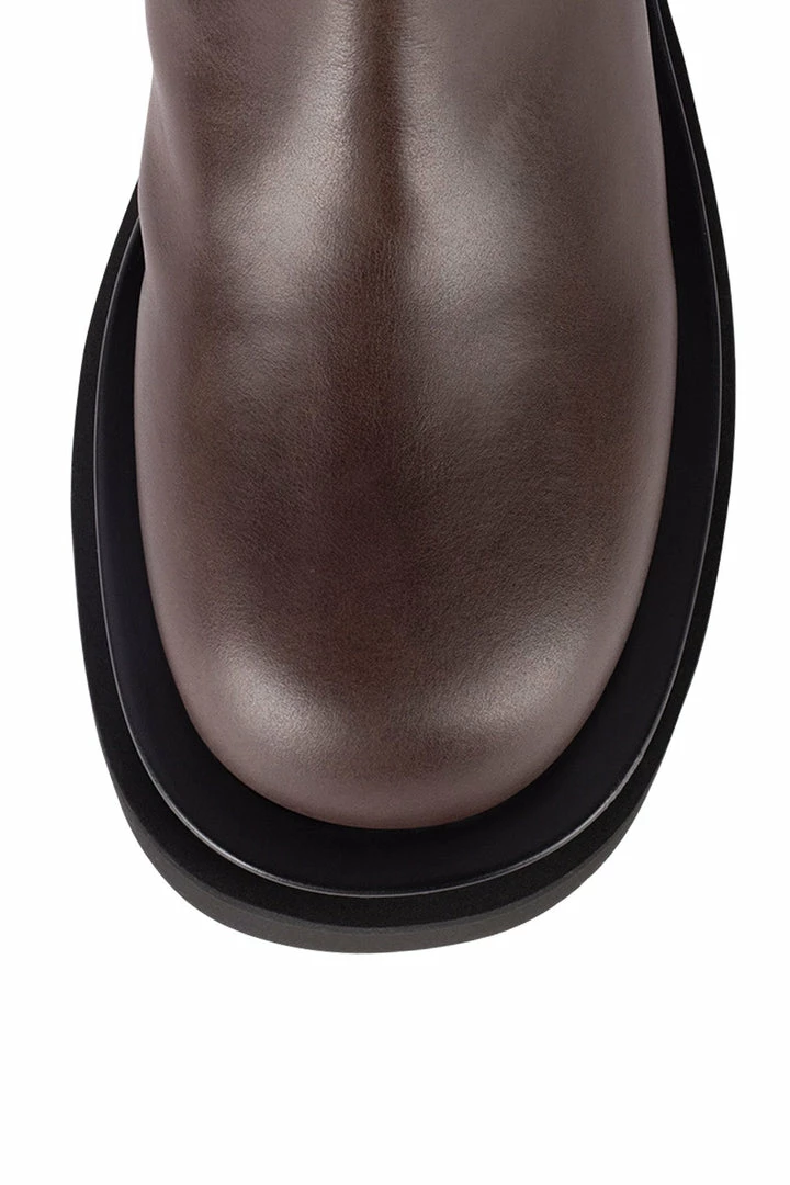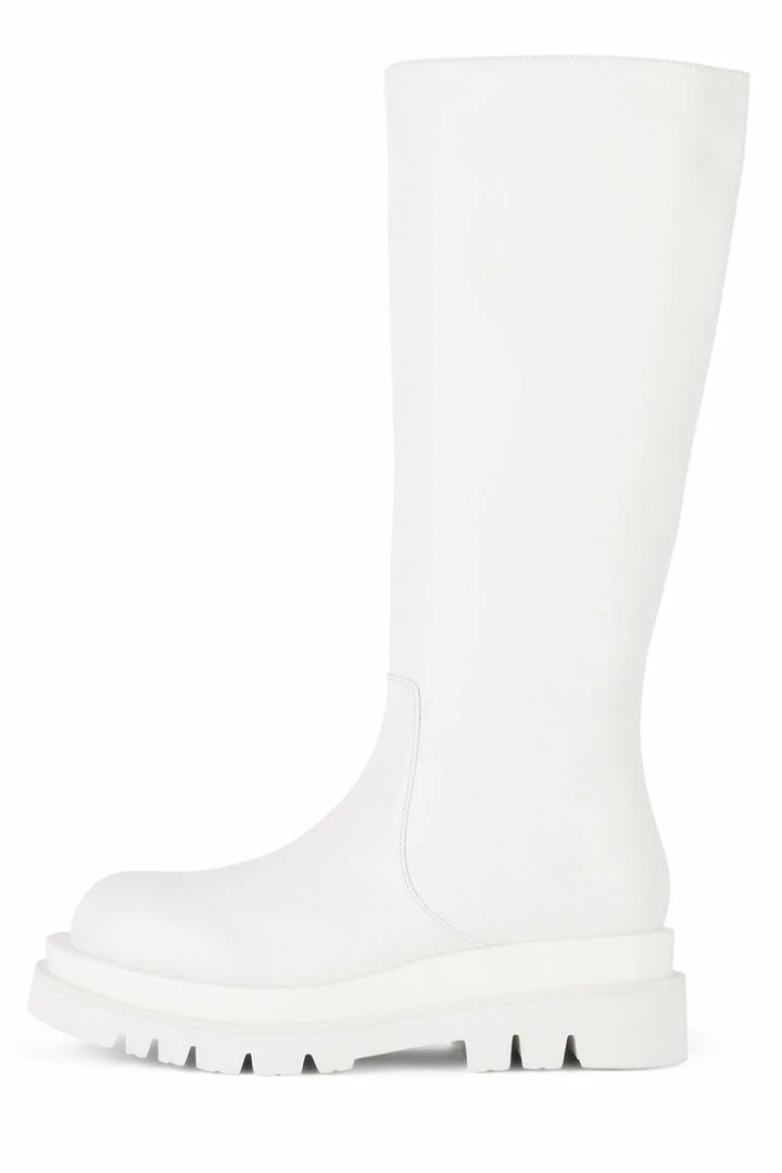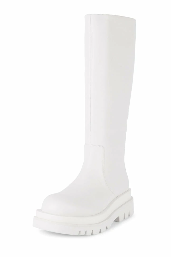 Knee-high platform lug sole boot.
