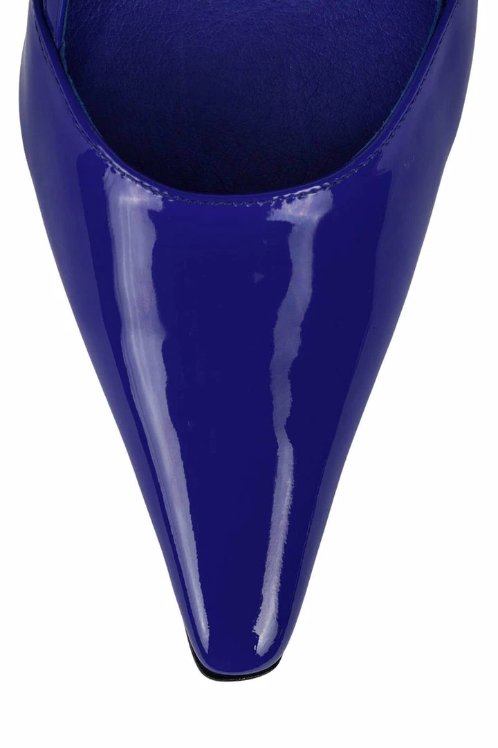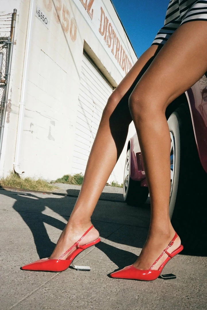Pointed-toe slingback pump with a “hidden heel” detail