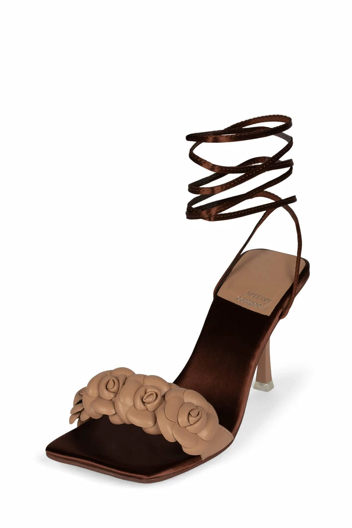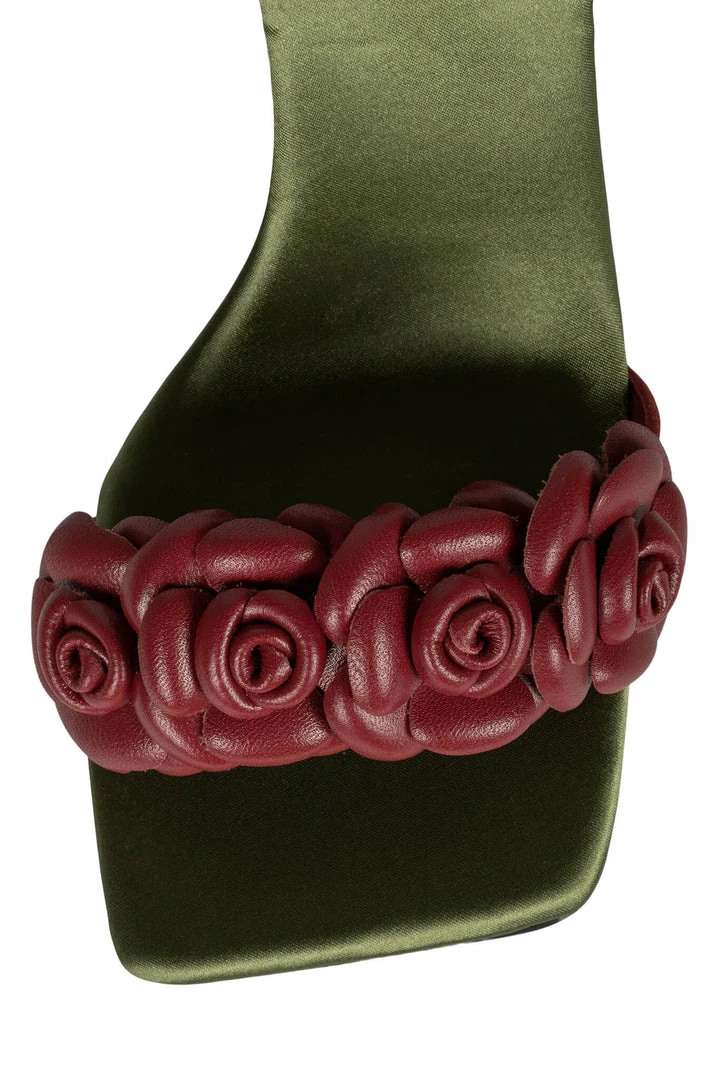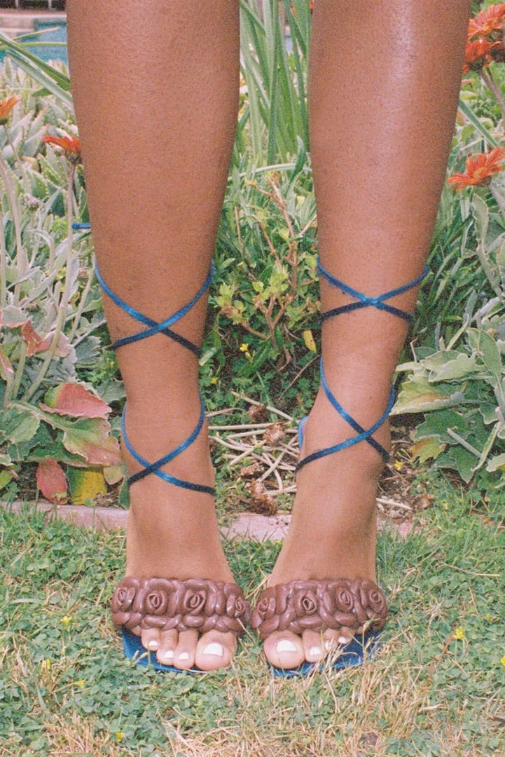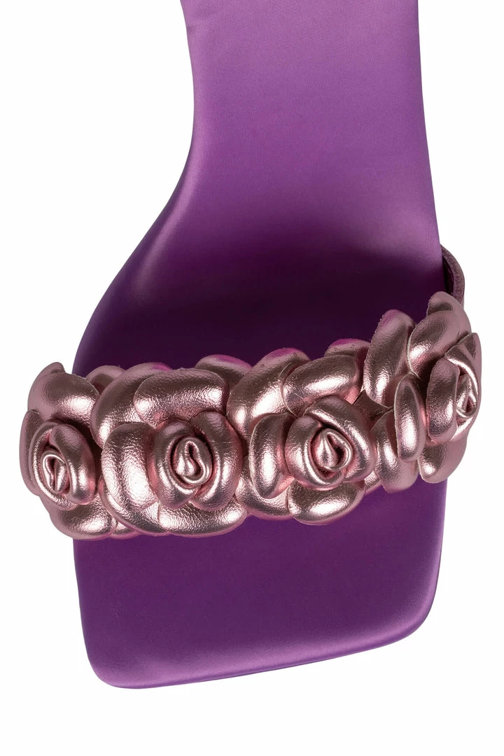 Lace-up stiletto sandal with rose detail