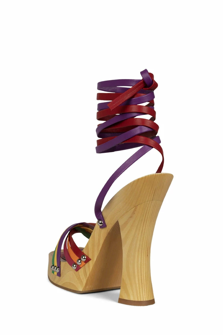Lace-up platform wooden heel with multi-strap crossband