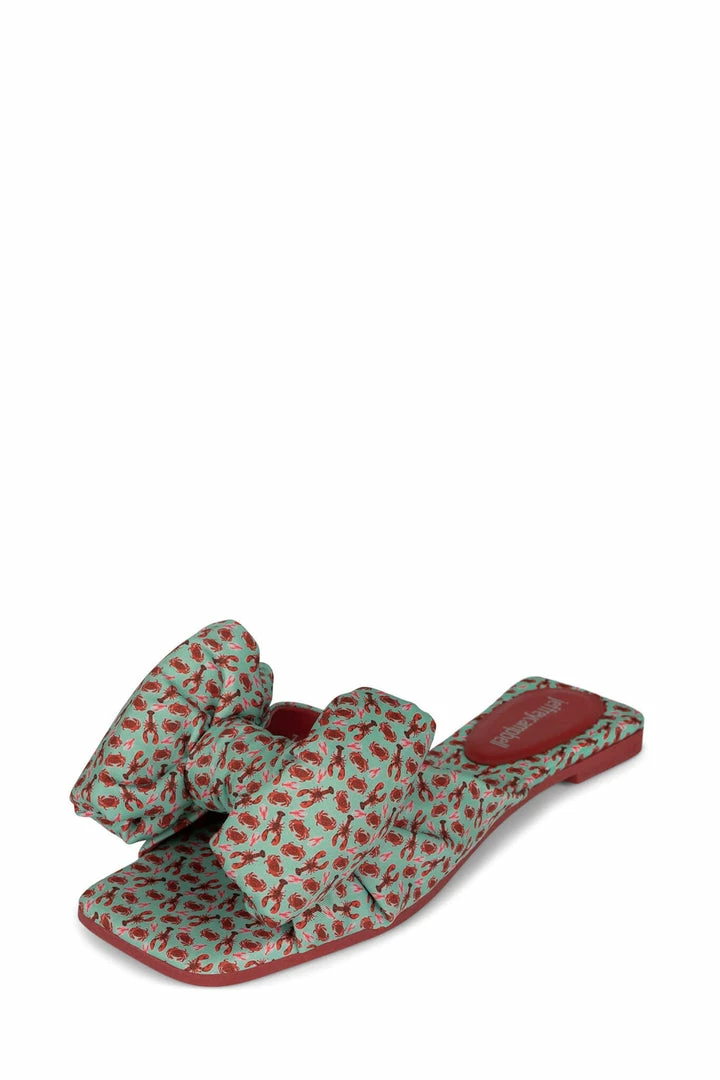 Slipper-inspired slide with bow.