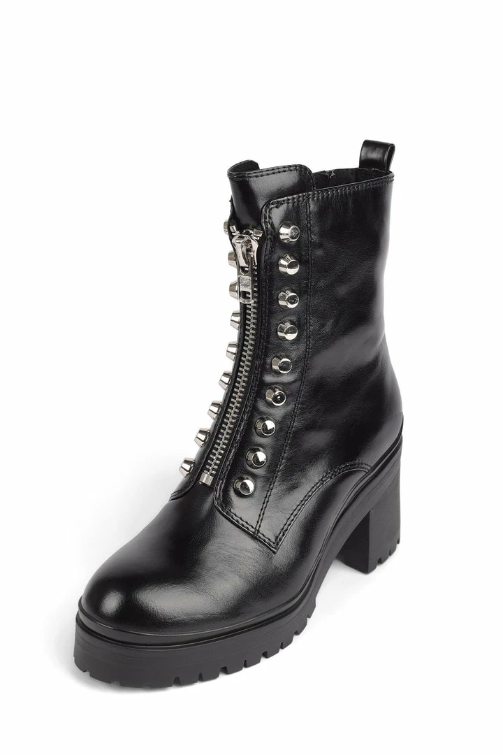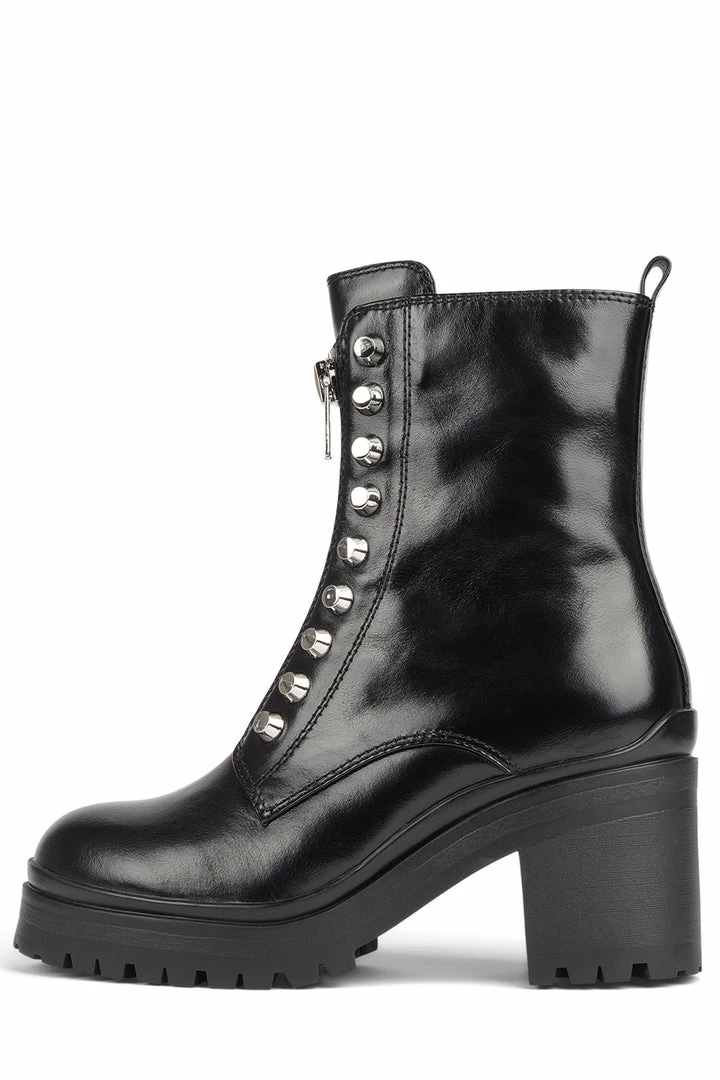 Heeled combat boot with stud detailing.
