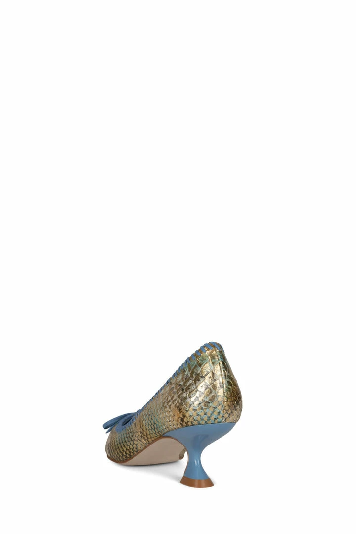 Mixed-material pump with sculpted kitten heel and bow detail