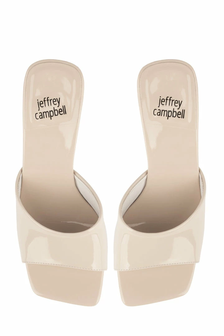 Square-toe heeled sandal.