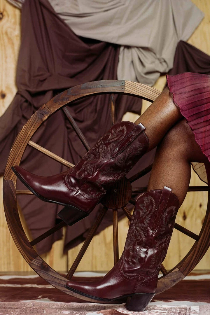 Mid-calf western heeled boot.