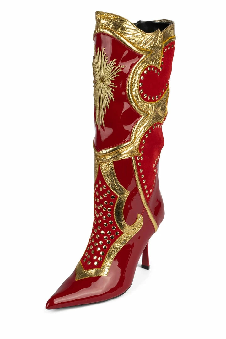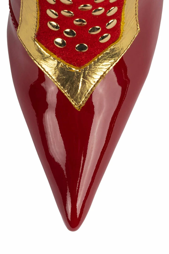 | Color | Tan Bronze Multi, Red Patent Red Suede Gold |