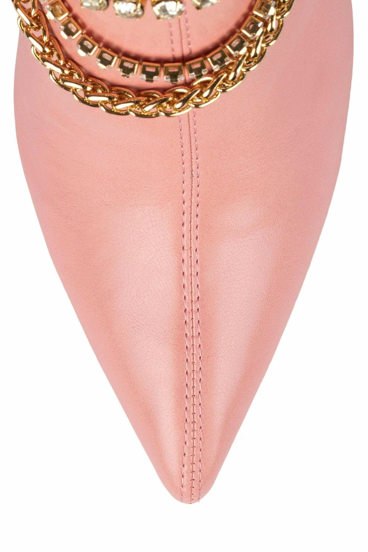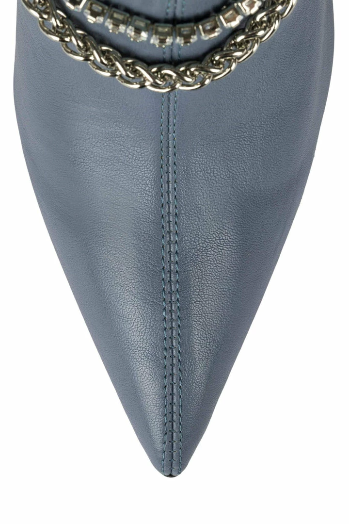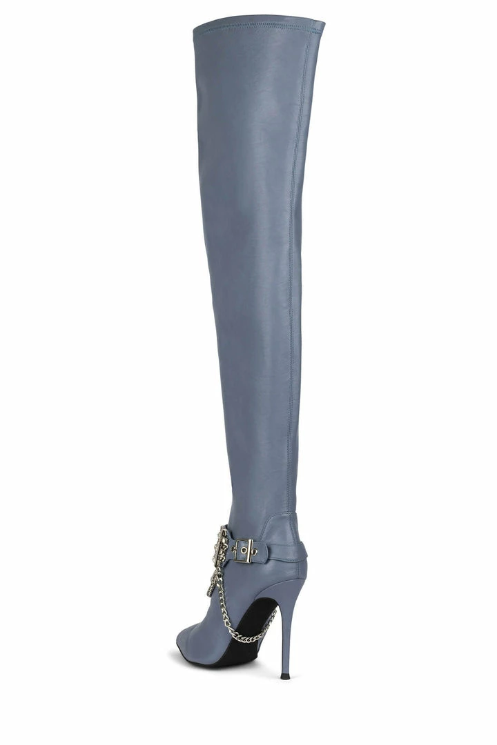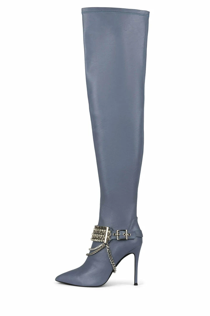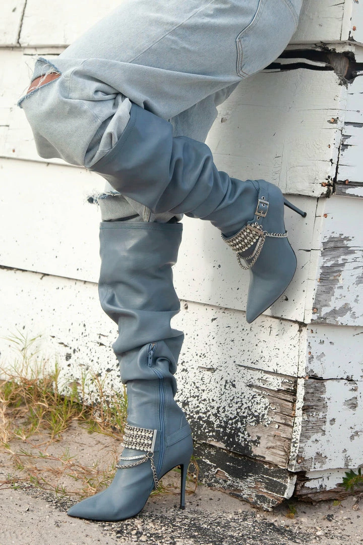 Over-the-knee boot with embellished strap