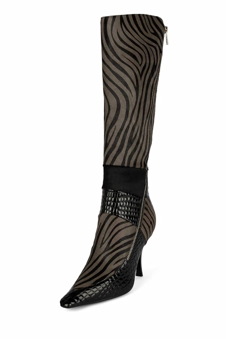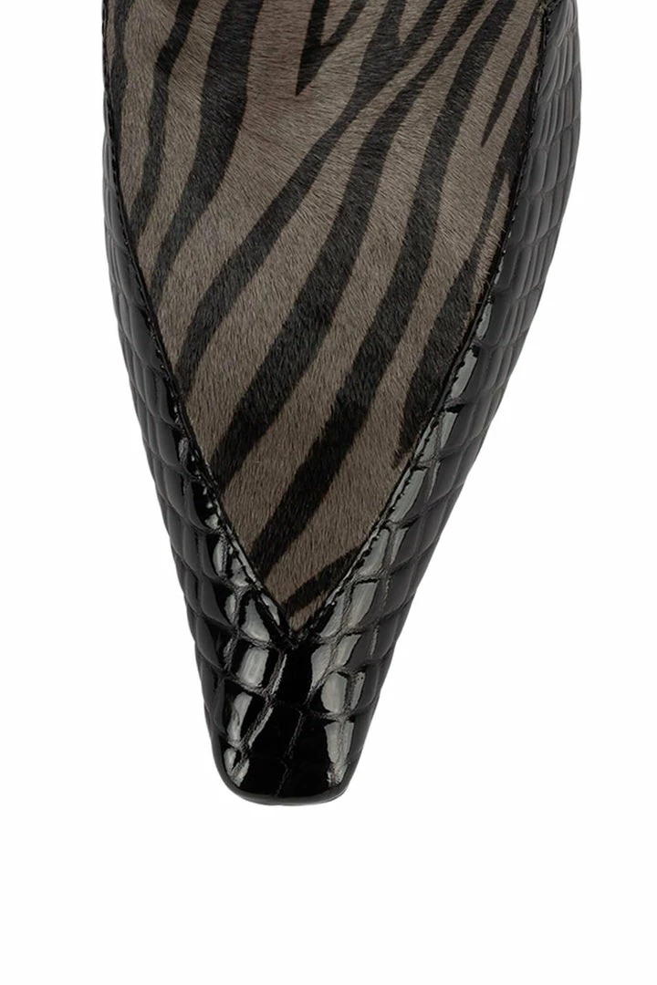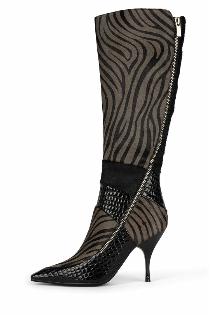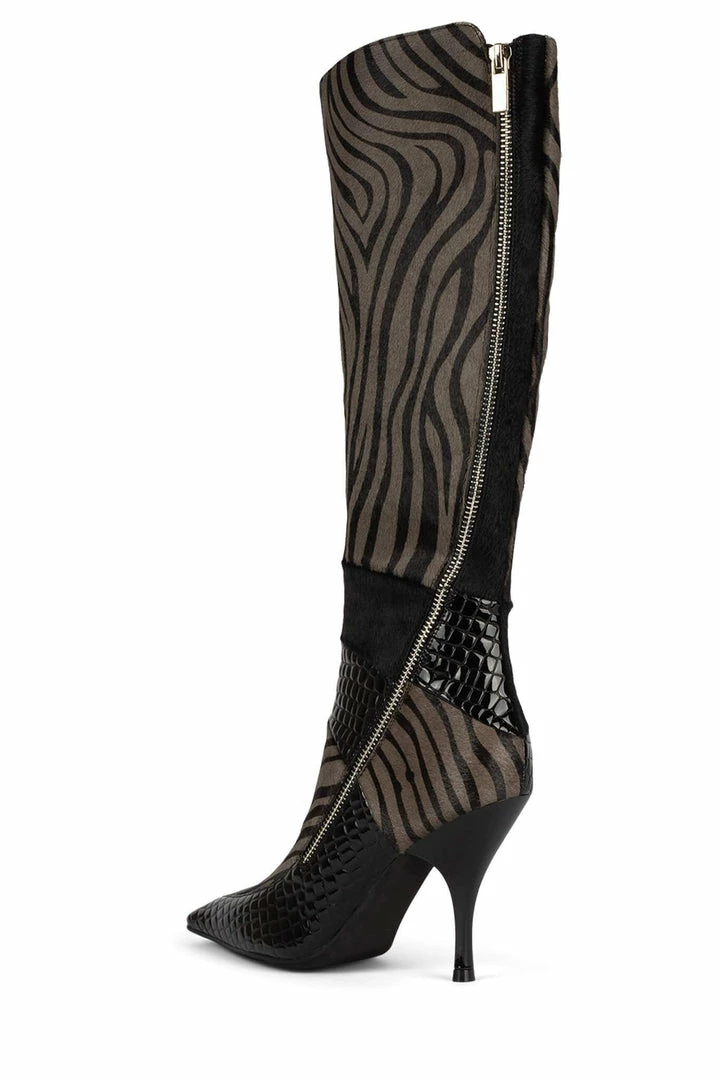 Mixed-material Y2K-inspired knee high boot with genuine calf half.