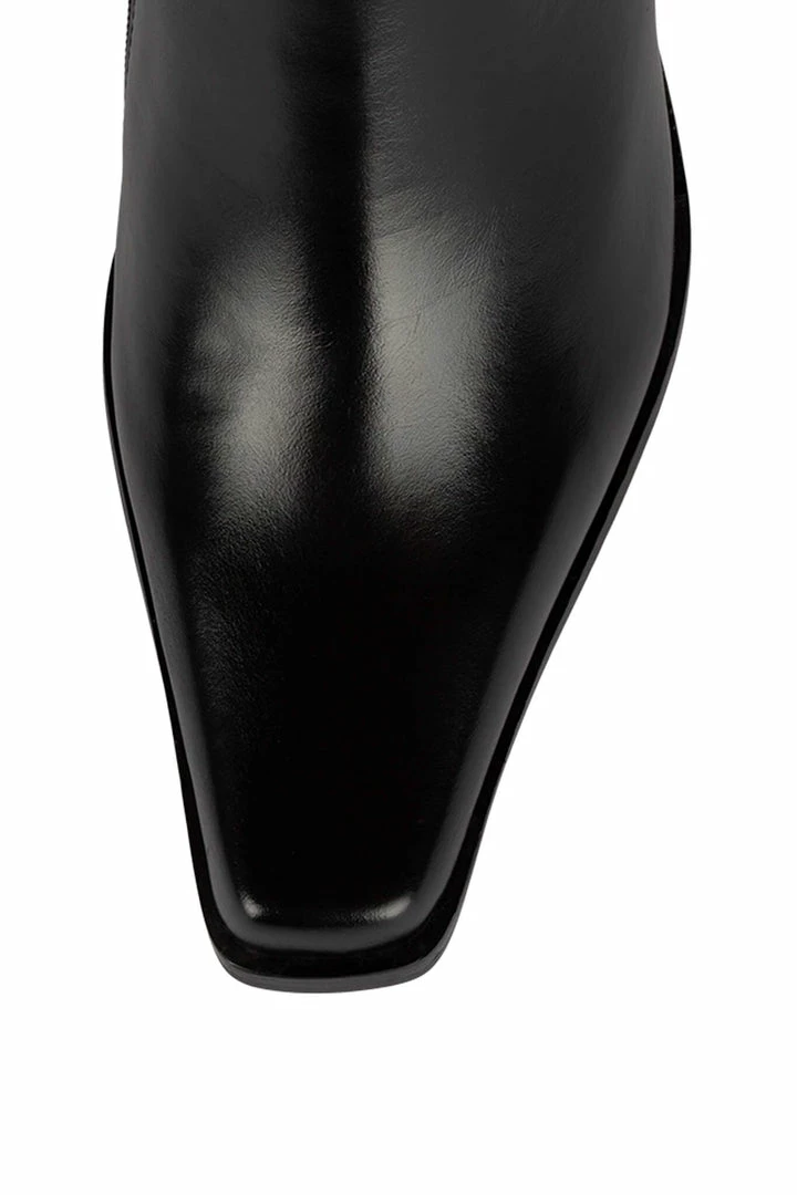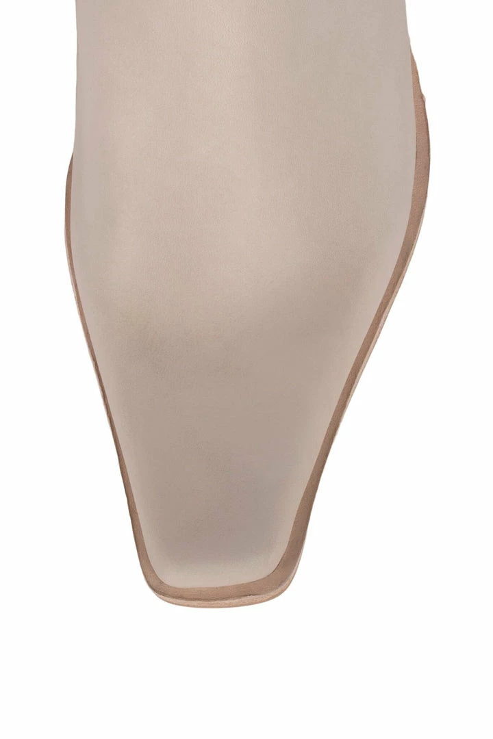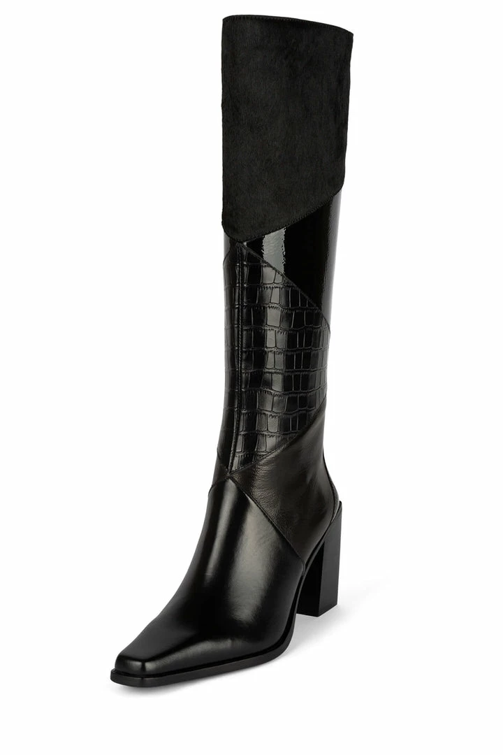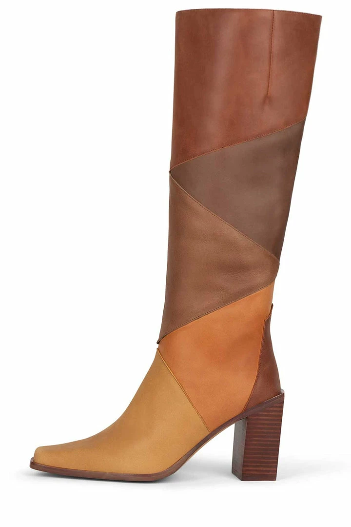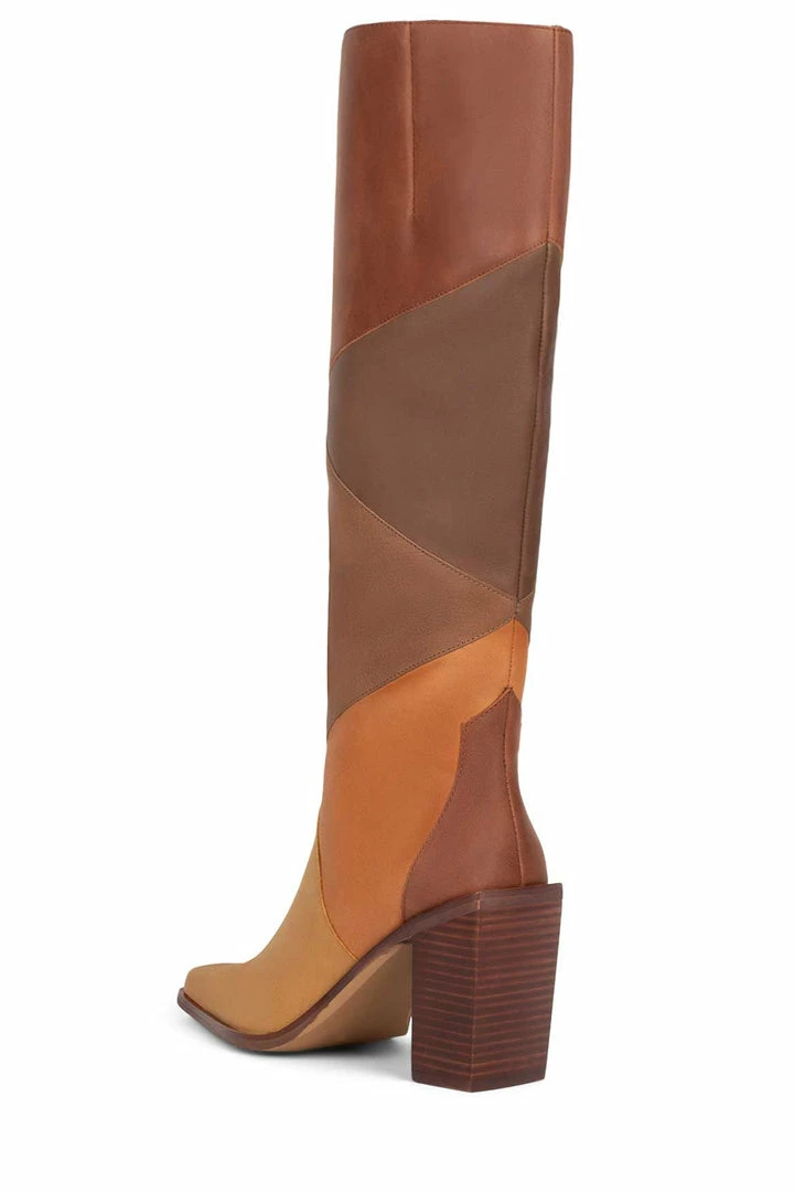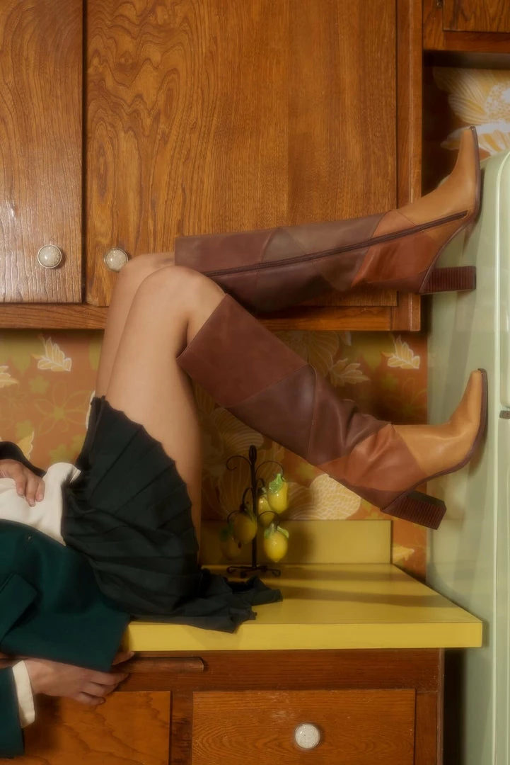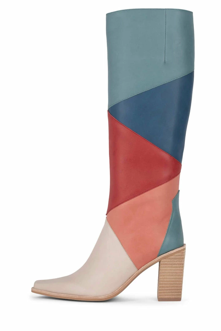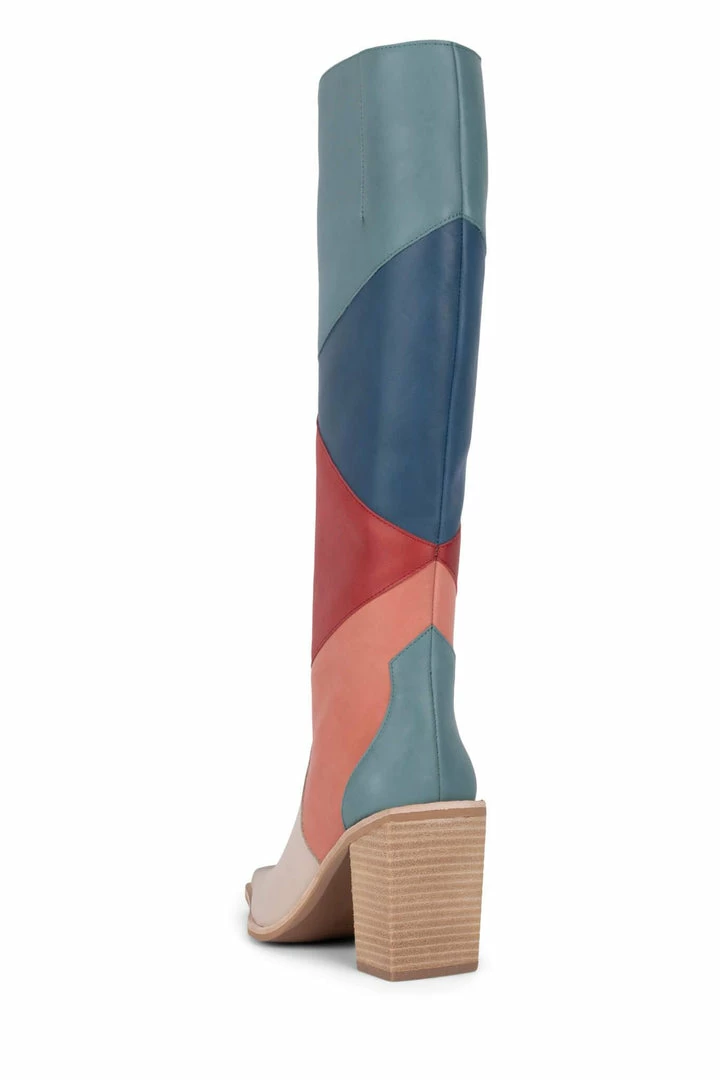 Color-blocked knee-high stacked heeled boot
