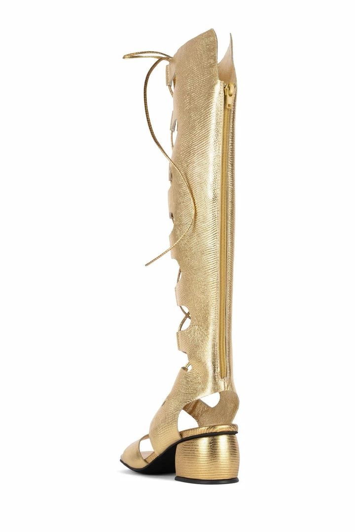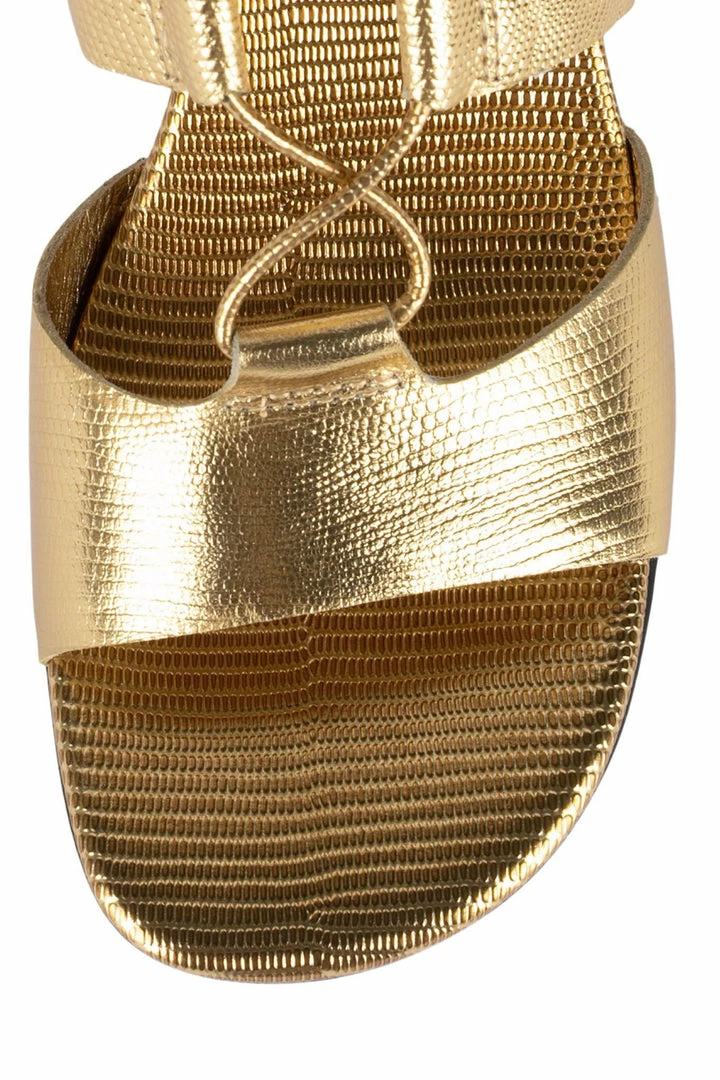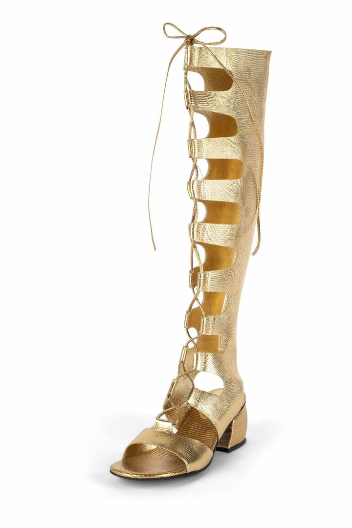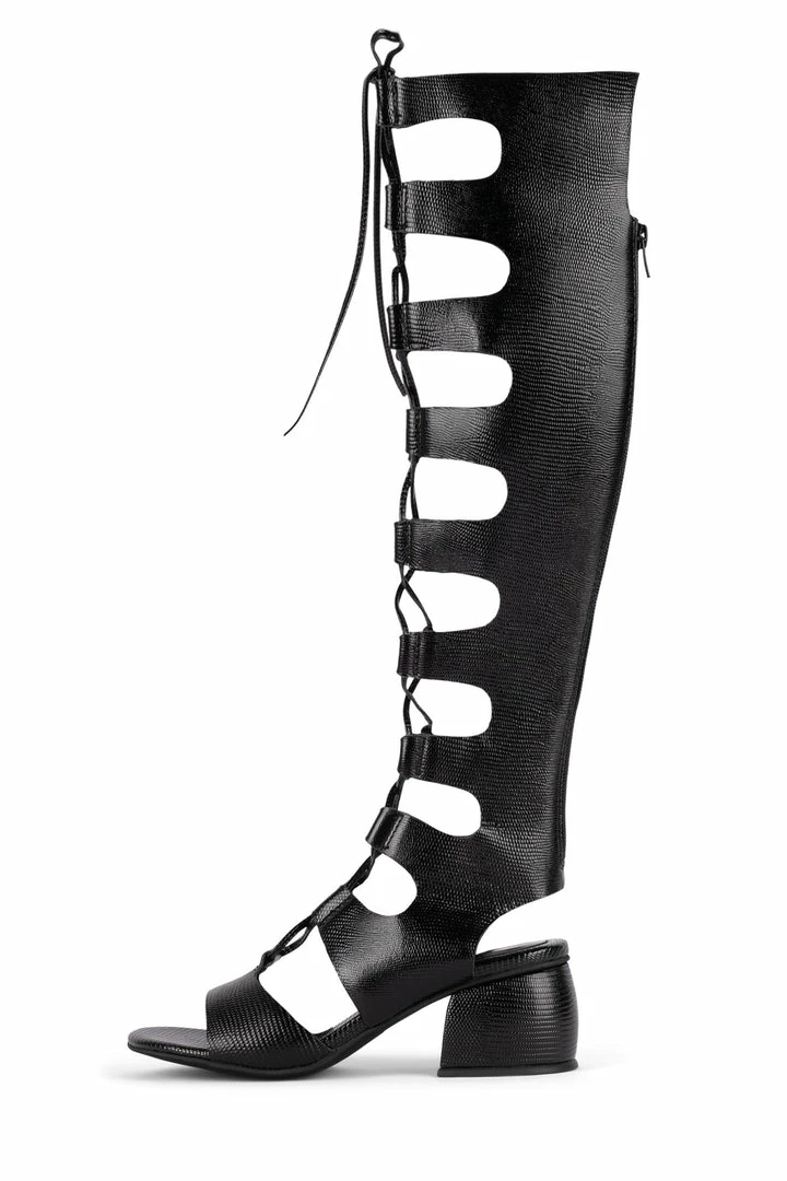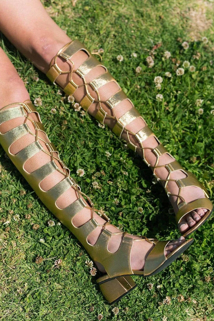 Lace-up block-heel gladiator boot.