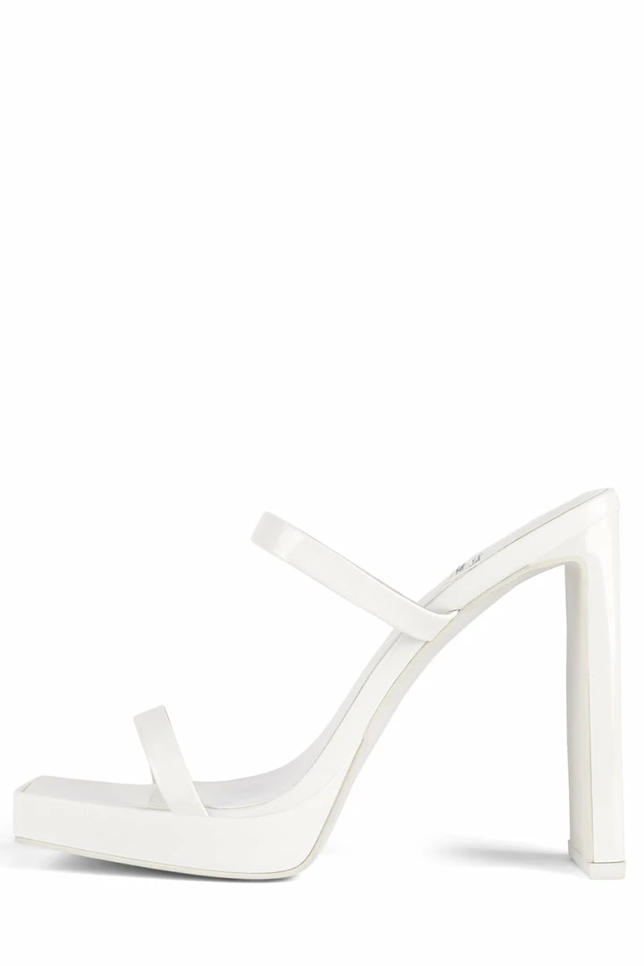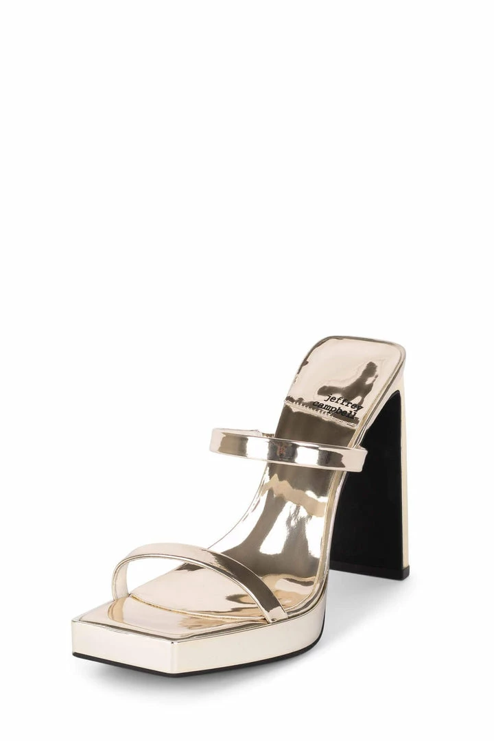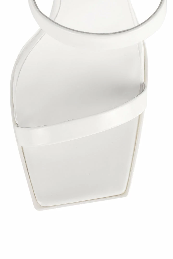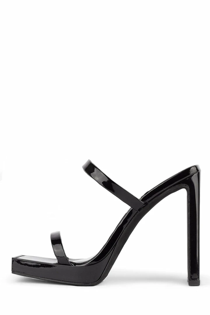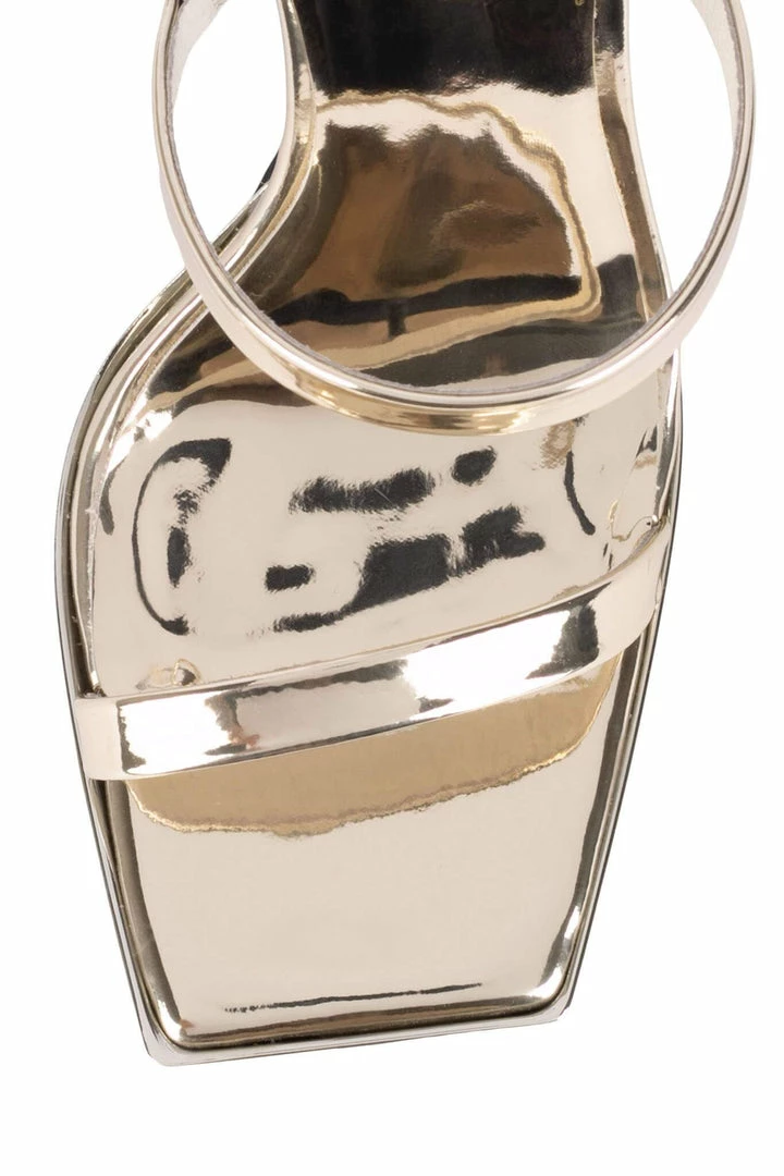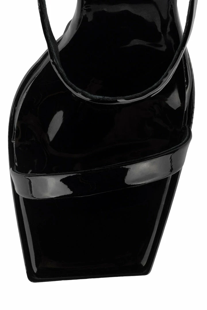 Heeled sandal with squared-off toe and heel.