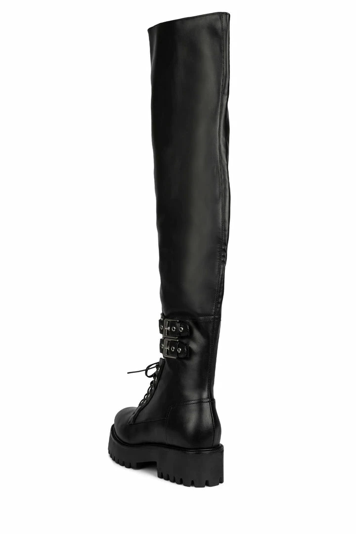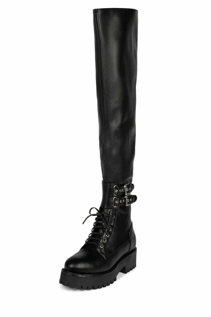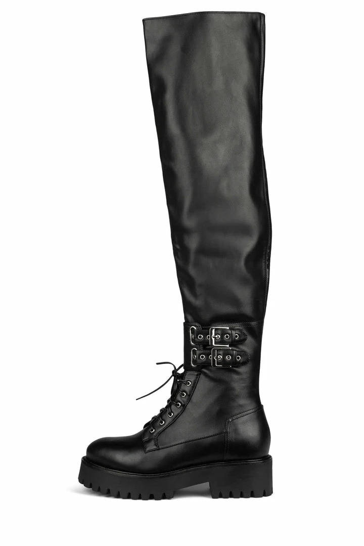 Over-the-knee combat boot with buckle detail