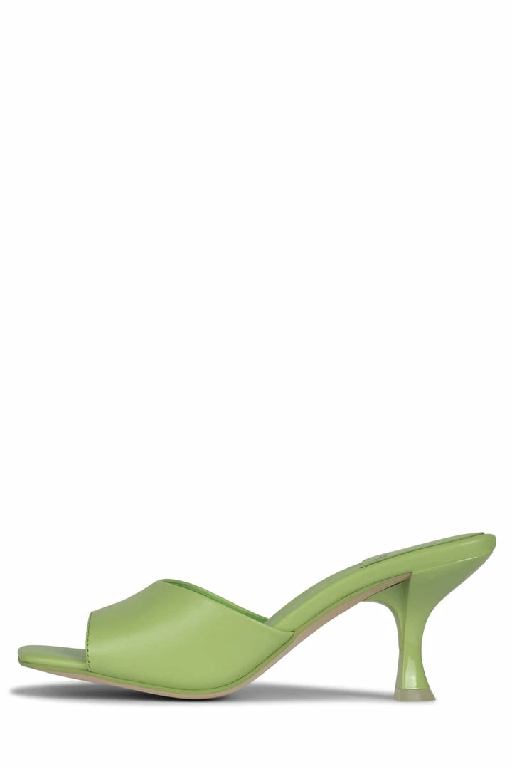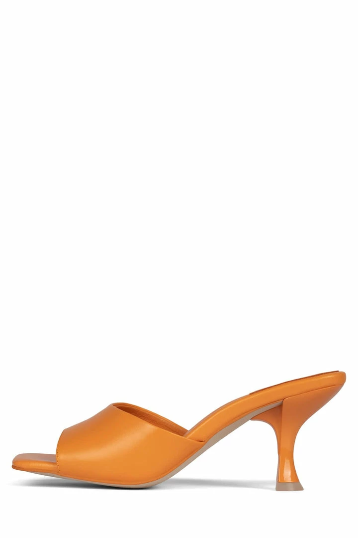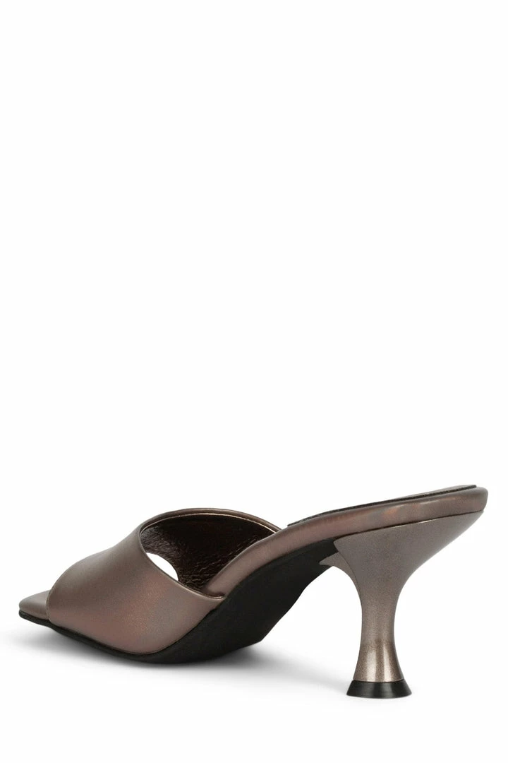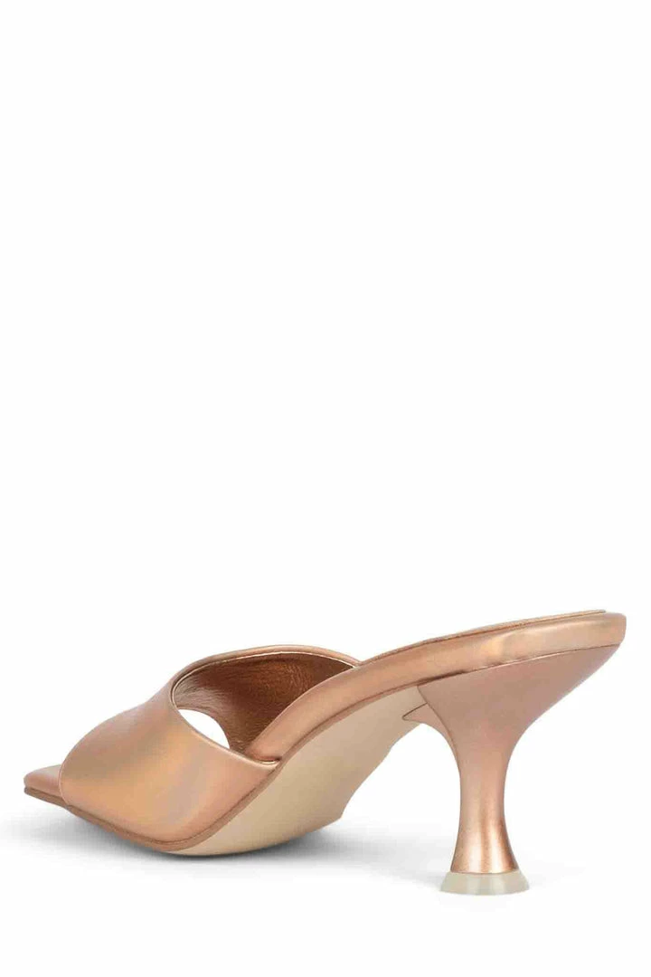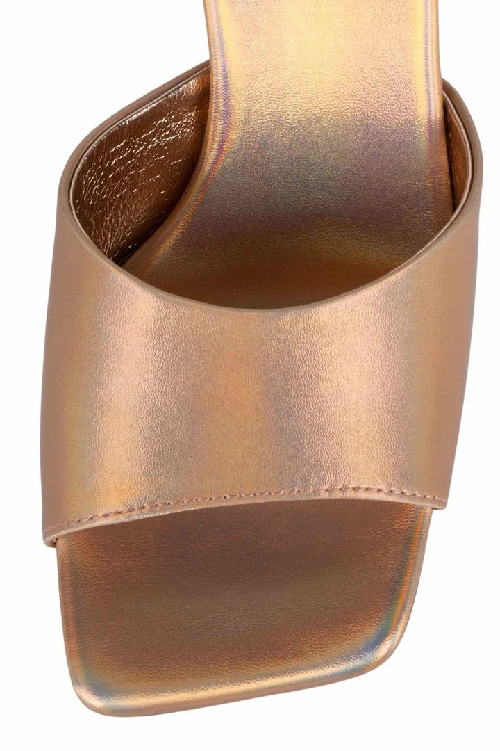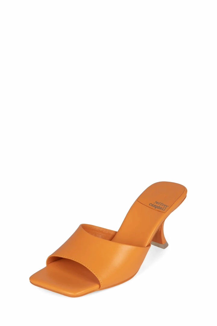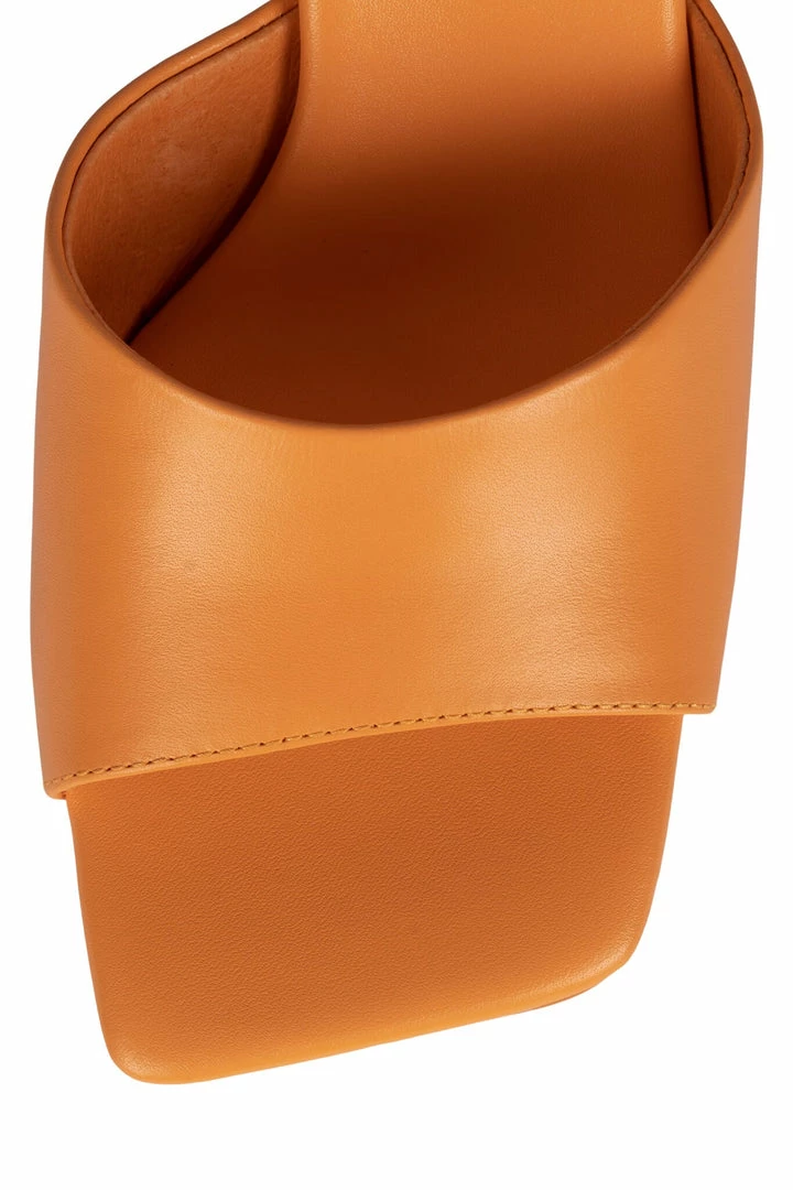 Square-toe heeled sandal.