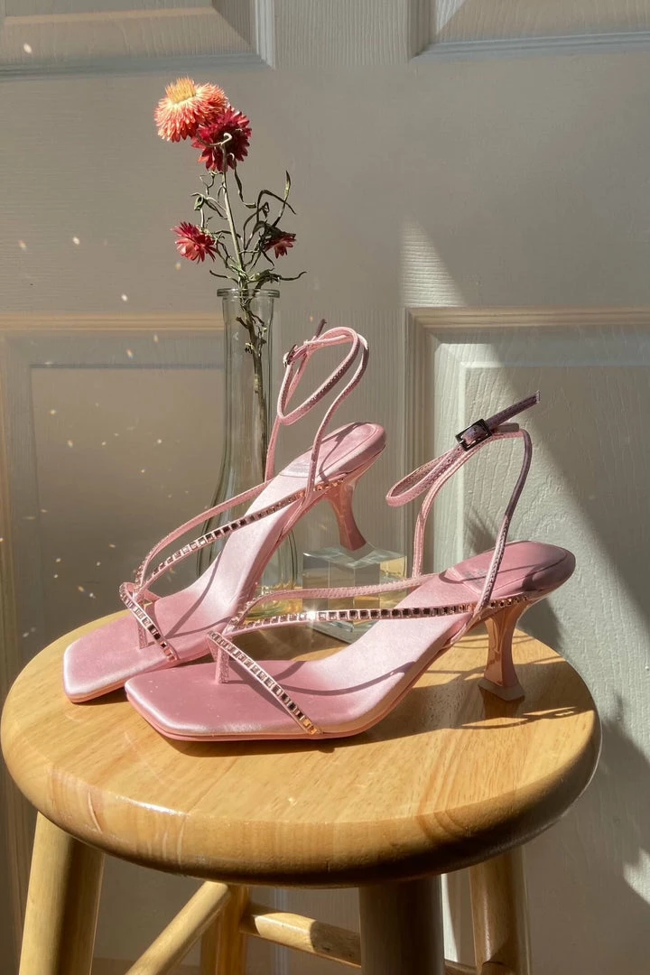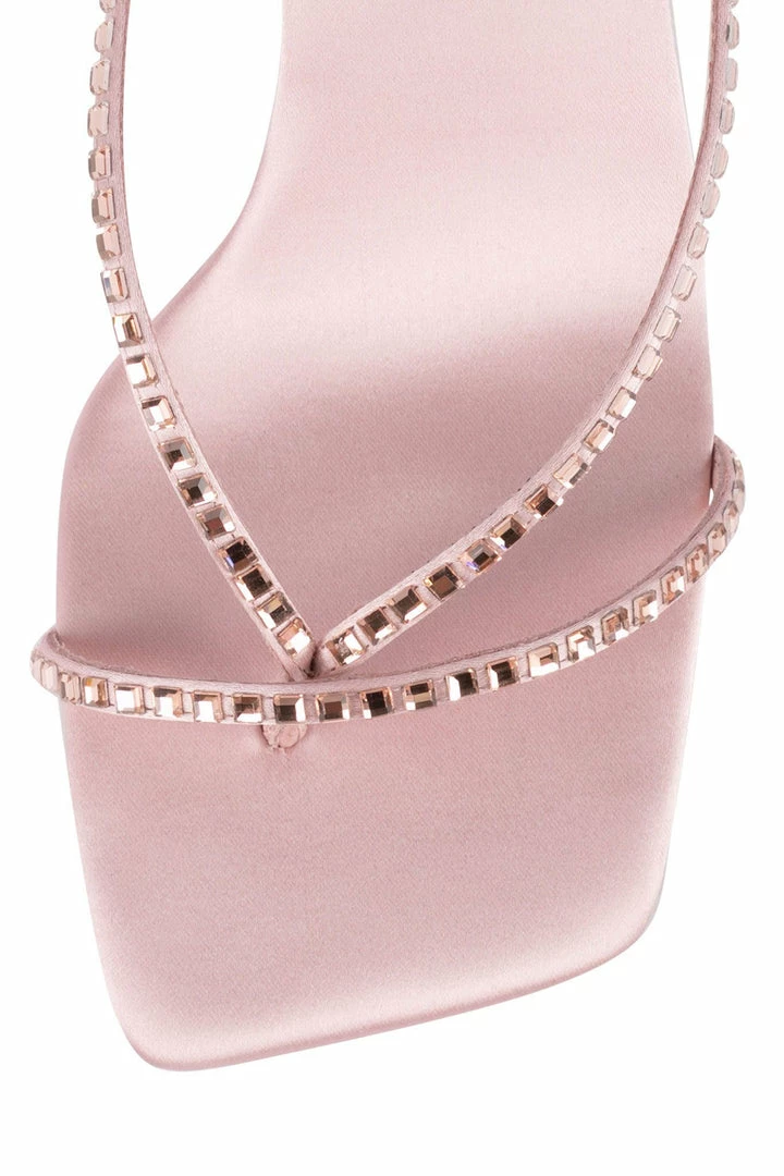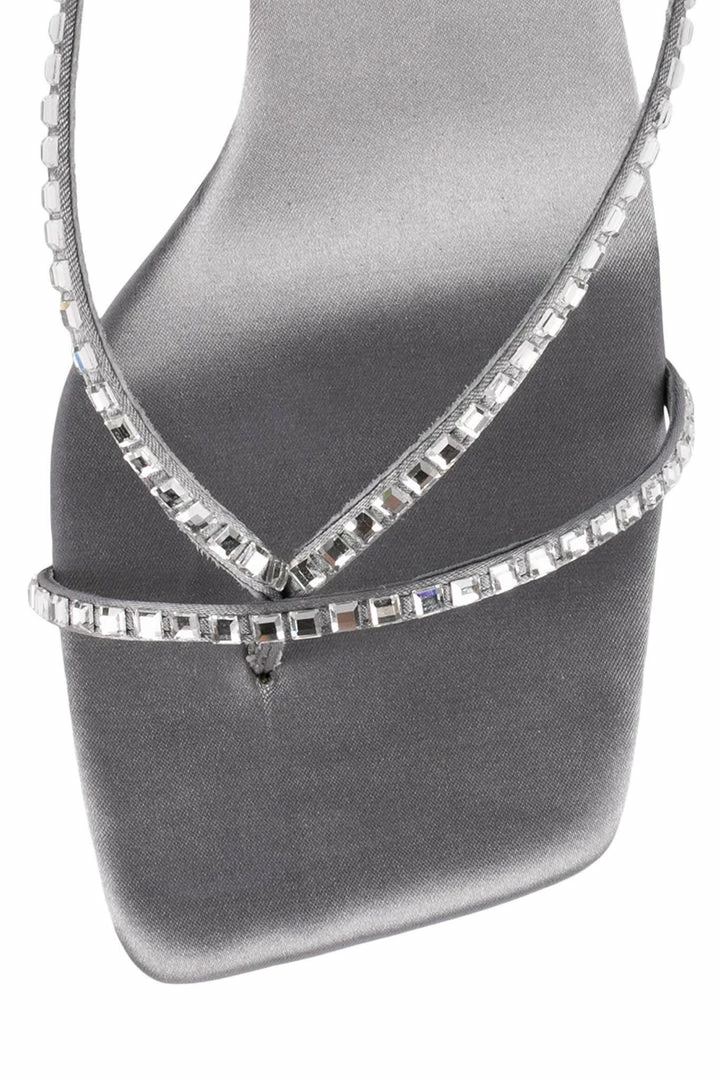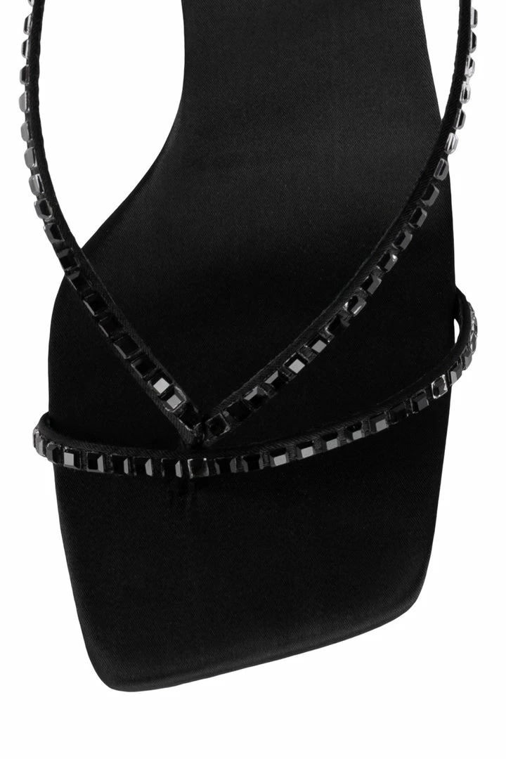 Square-toe strappy sandal with jewels.Â