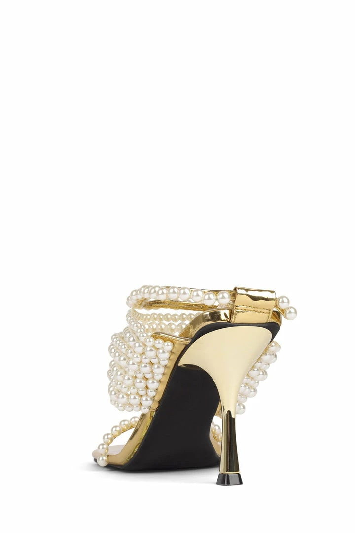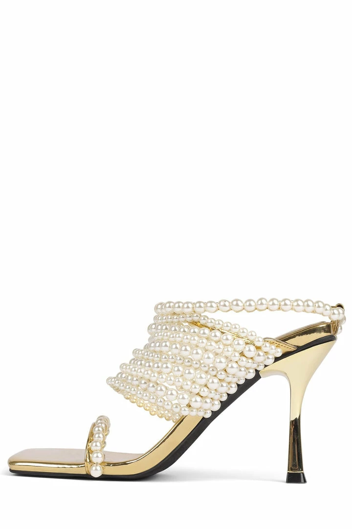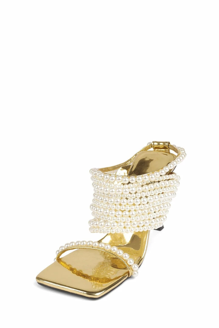 Square-toe sandal with faux-pearl detailing.