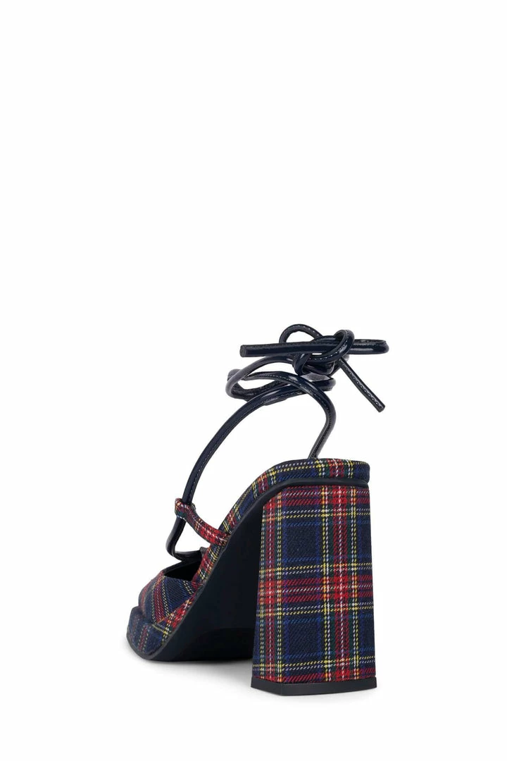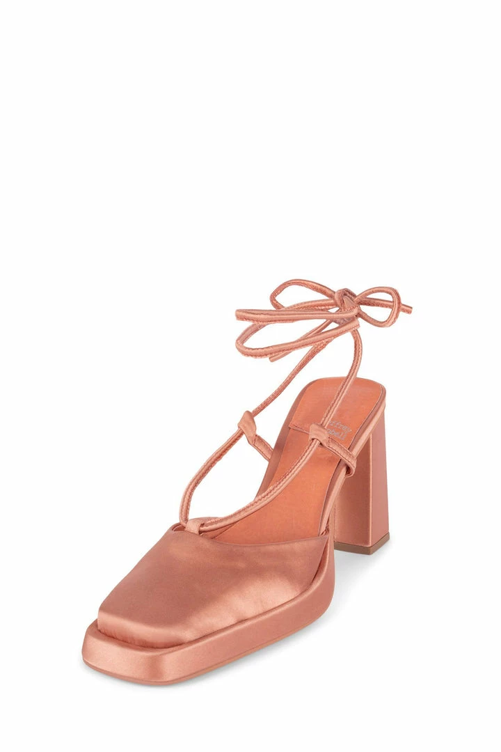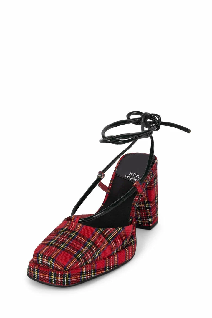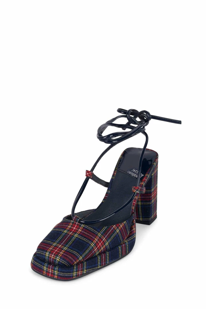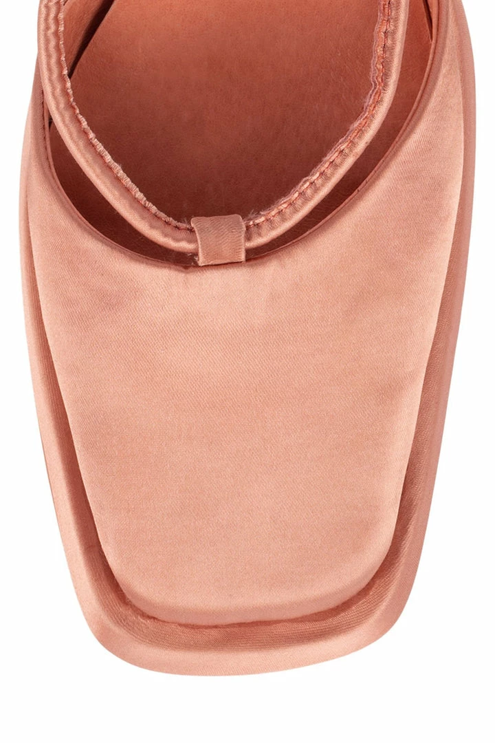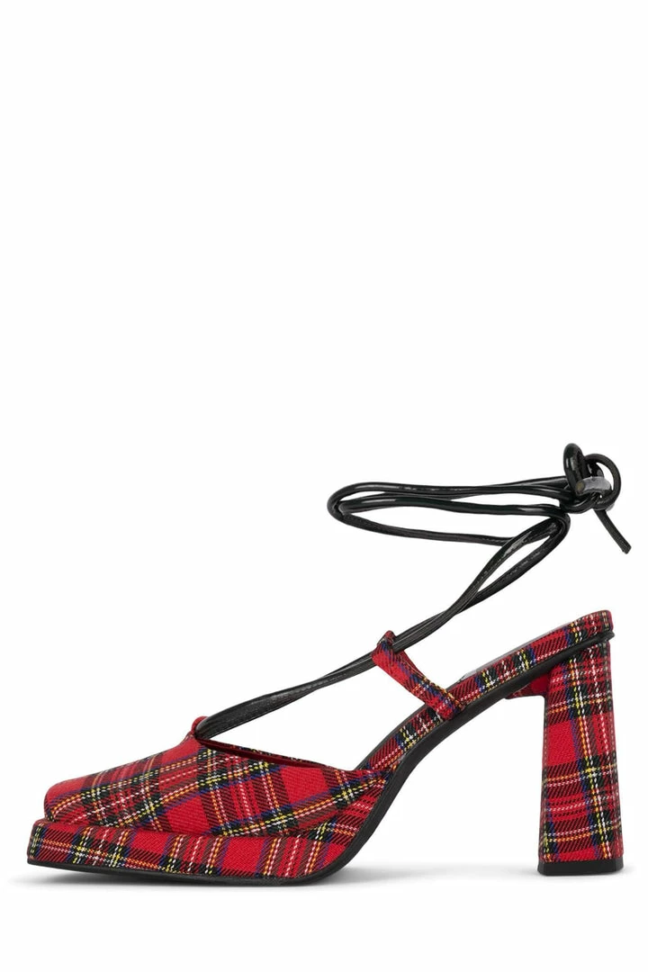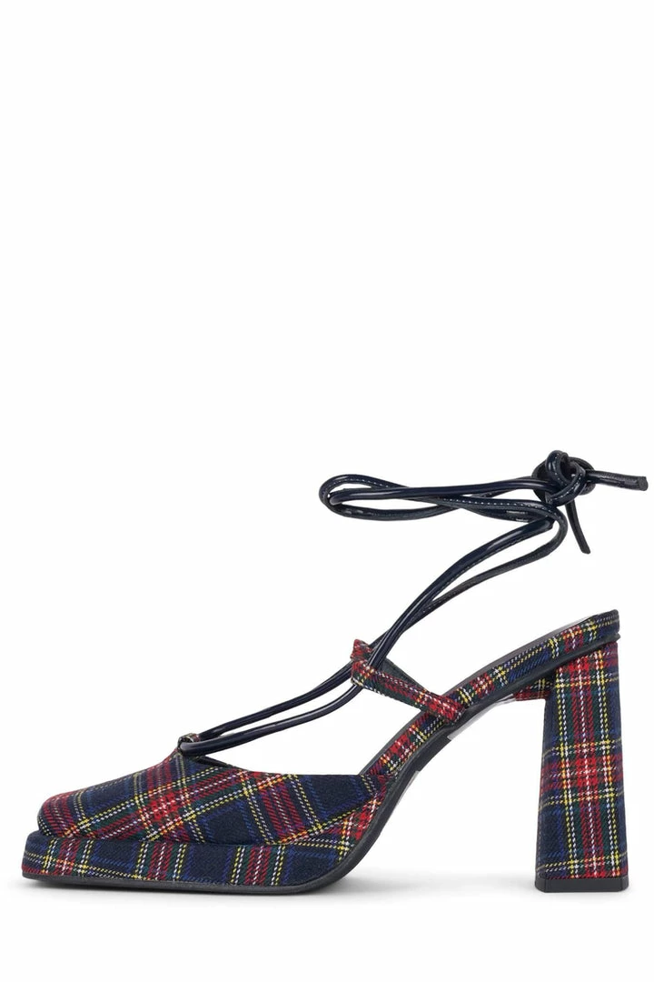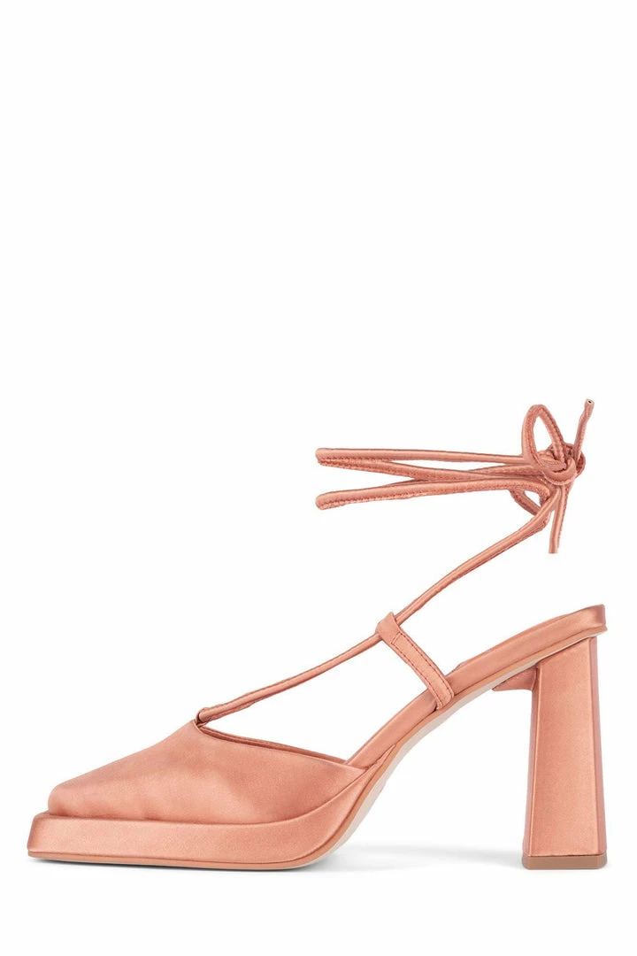 Square-toe platform pump with ankle-tie